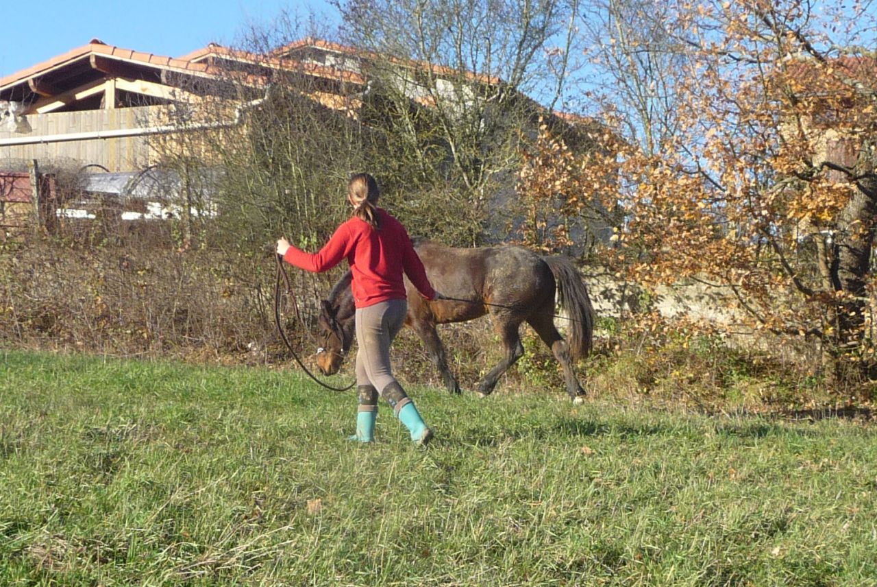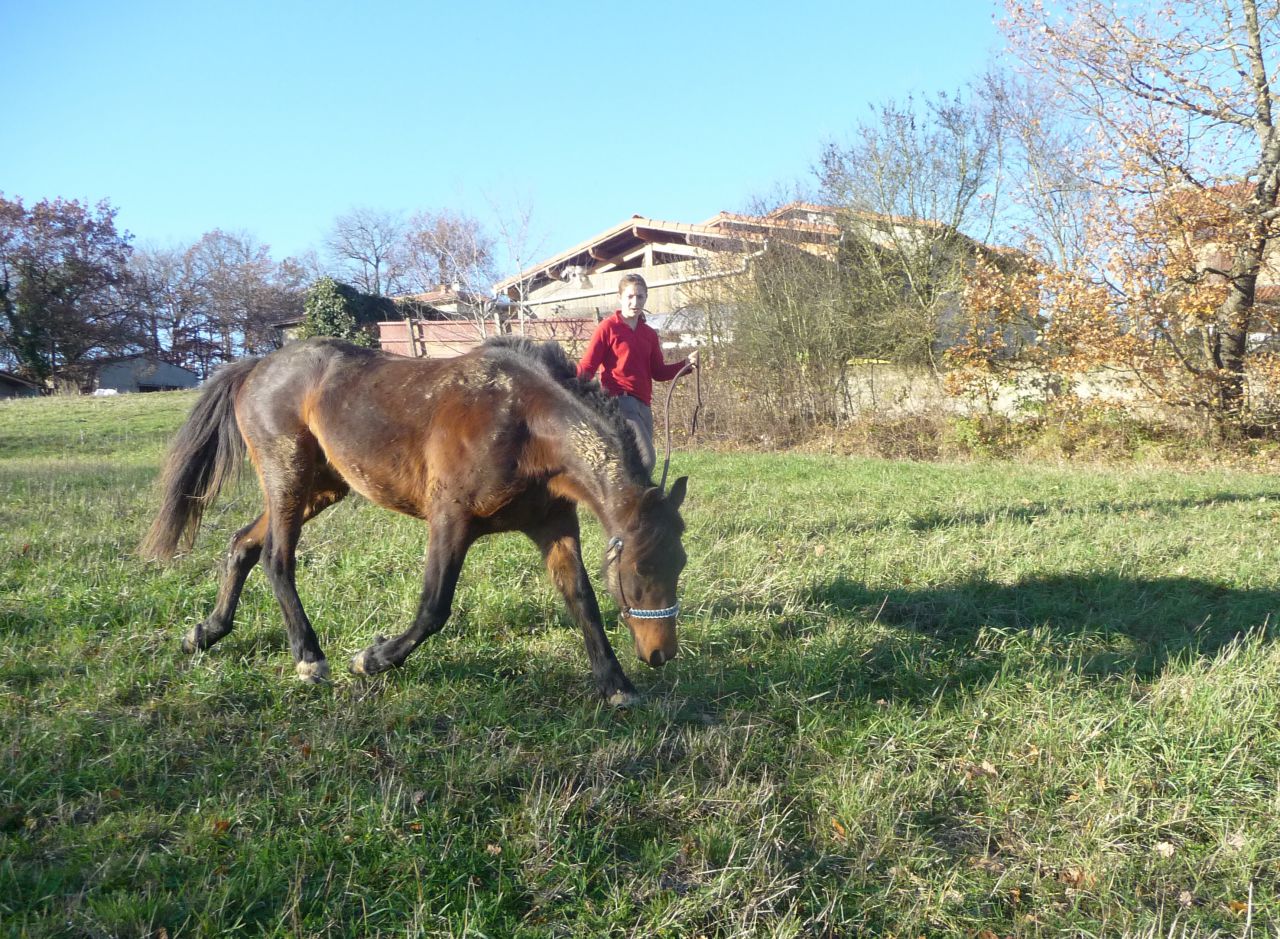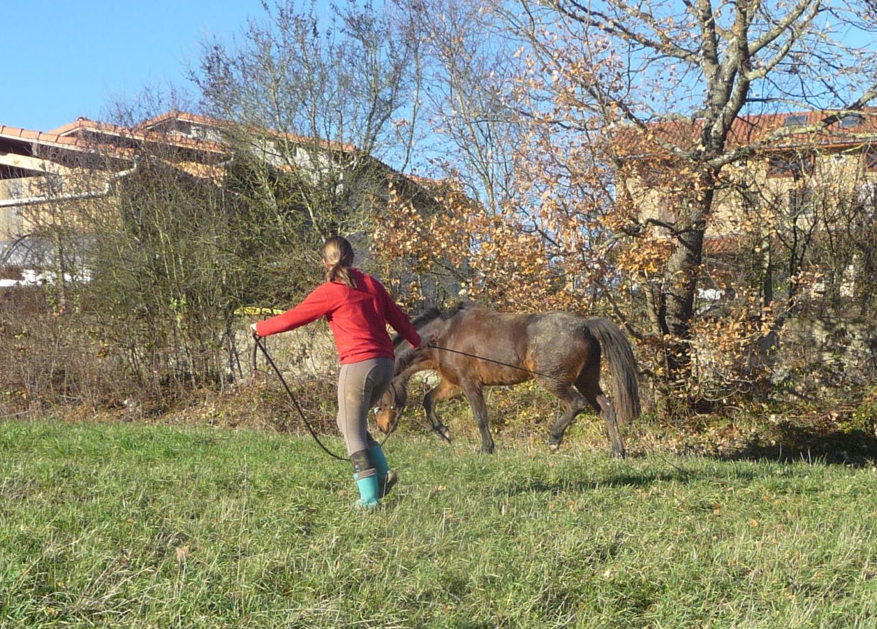 | Dire merci | ah bé c'est bien cette petite longe ça a du lui faire du bien ! elle est gentille ta mamie de venir te prendre en photo en plus le temps avait l'air de bien s'y prêter ! Par contre comme tu dis elle a l'air d'avoir perdu beaucoup de muscle, mais bon en douceur tu vas lui faire re prendre tout ça ! |