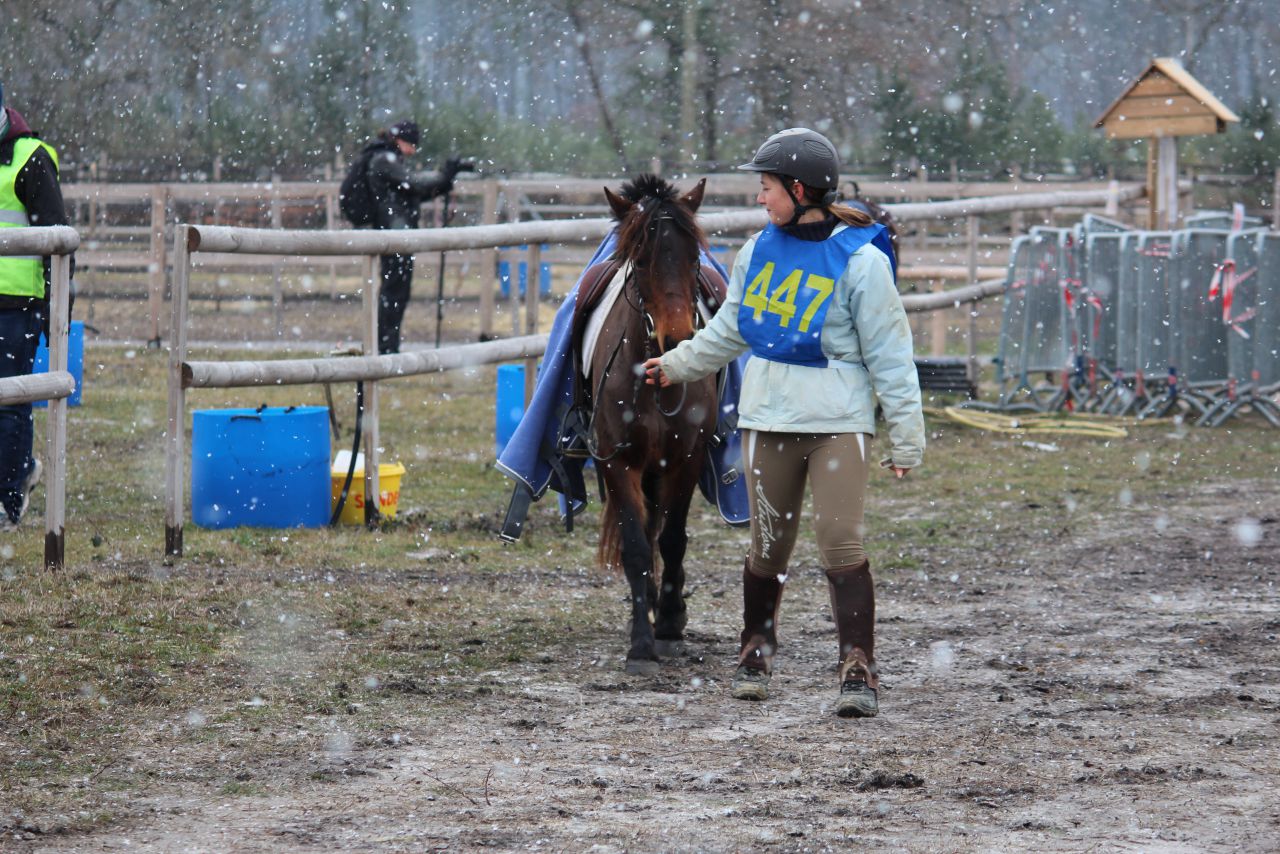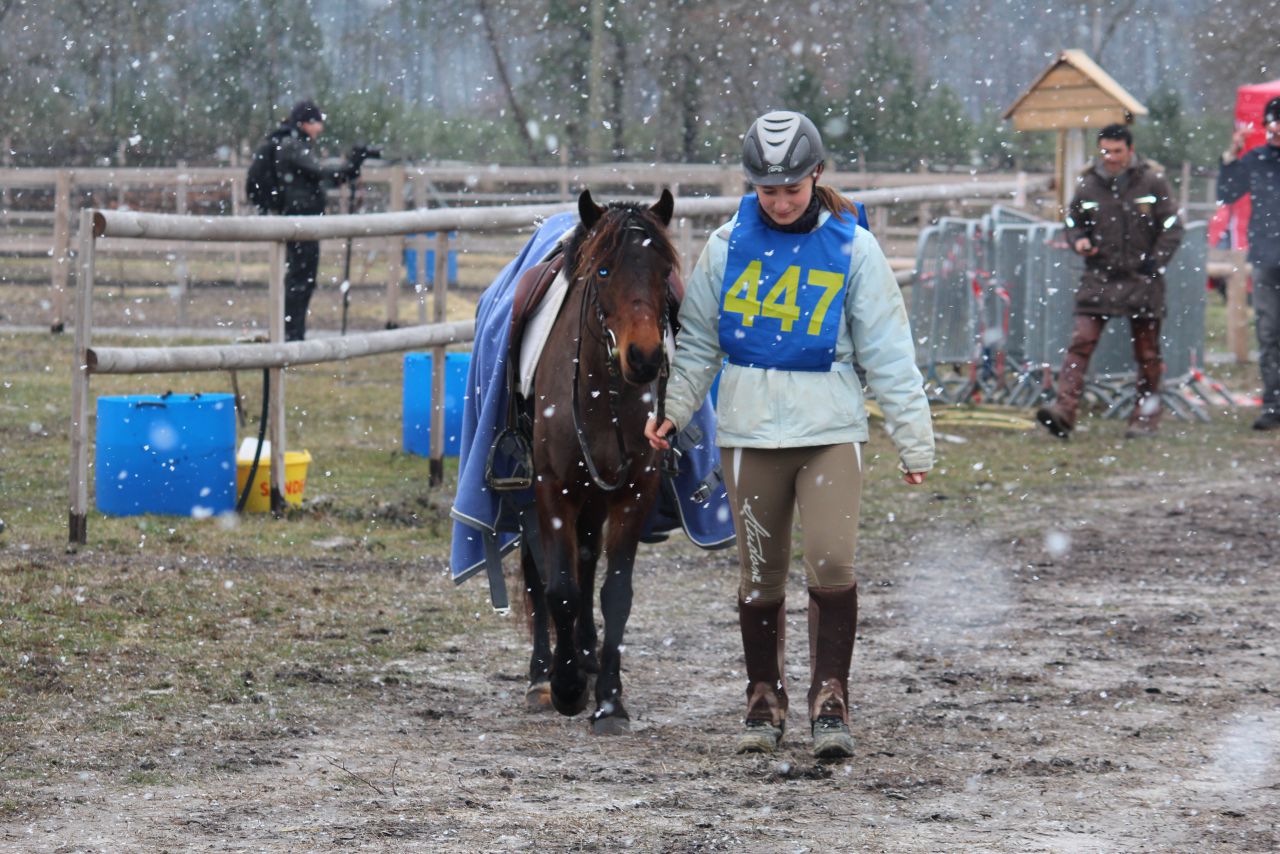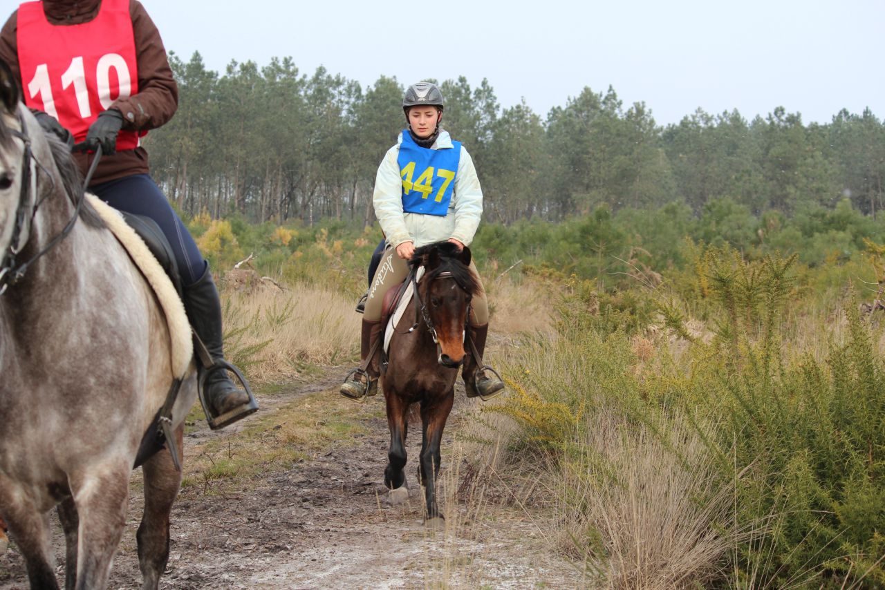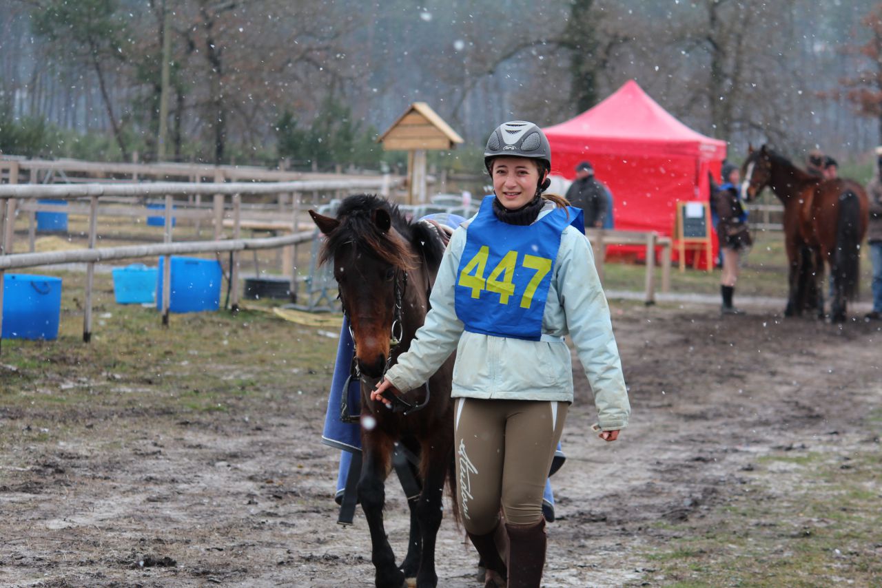 | Dire merci | bah écoutez ça c'est SUPER bien passé !! au départ controle véto tout nickel, elle est tellement allante qu'elle ne parait pas dutout irrégulière, elle est meme trop allante, hyper bondissante dans ses foulées et petit saut de moutons et galop sur une partie du retour ensuite avant qu'on ne prenne le départ, il se met à neiger, mais bien neiger quoi, ça enerve sépia, elle secoue la tete, mais je n'ai qu'une peur, que ça tienne .. on marche autour du départ pour chauffer un peu les chevaux, et elle est un peu énervée par la neige, gros secouage de tete, petits jettages d'antérieur, trottinement ![]() je part avec j.m g, des cavaliers à lui et c.d chez je monte qui monte un cheval à j.m on prend le départ et la neige s'arrete, mais une ponettte quand meme bien surexitée qui s'énerve dans les parties au pas du départ et qui est bien chaud bouillante aux allures, mais heureusement pour moi, elle est très sensible donc pas d'embarquement ou autres, elle me sort juste des allures de malade ponette super énergique comme ça jusqu'à l'arrivée où elle ne veut meme pas s'arreter pour me laisser descendre ou pour qu'on lui mette un licol , je prend le coeur, 66bpm, on n'arrose pas, on met une couverture et on la marque, en qq minites elle est à 60bpm donc on la marche encore un peu est en 10min elle est à 54 donc on la passe, sur l'aire véto, elle est un peu tendue, donc la véto la prend à 60bpm, trotting nickel, jument bien allente tout nickel on la ramene au van, où elle mange bien, bien que parfois un peu agitée, mais rien ne concurrence avec la bouffe pour sépia |