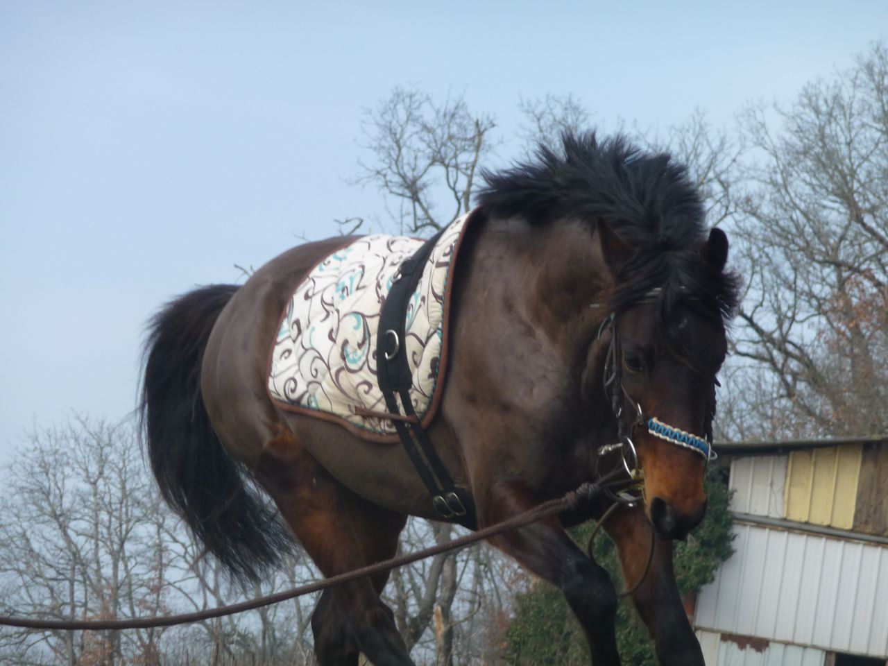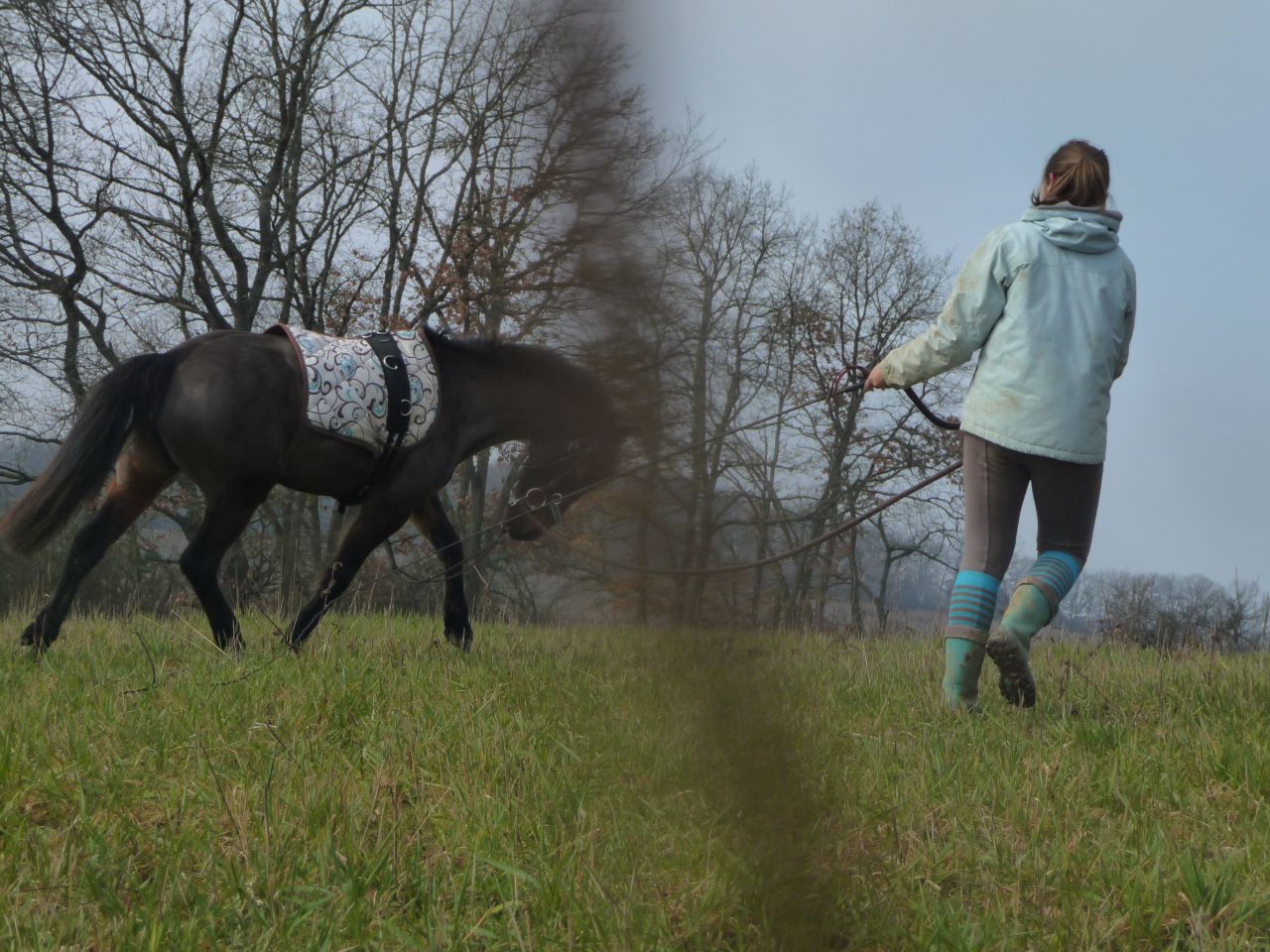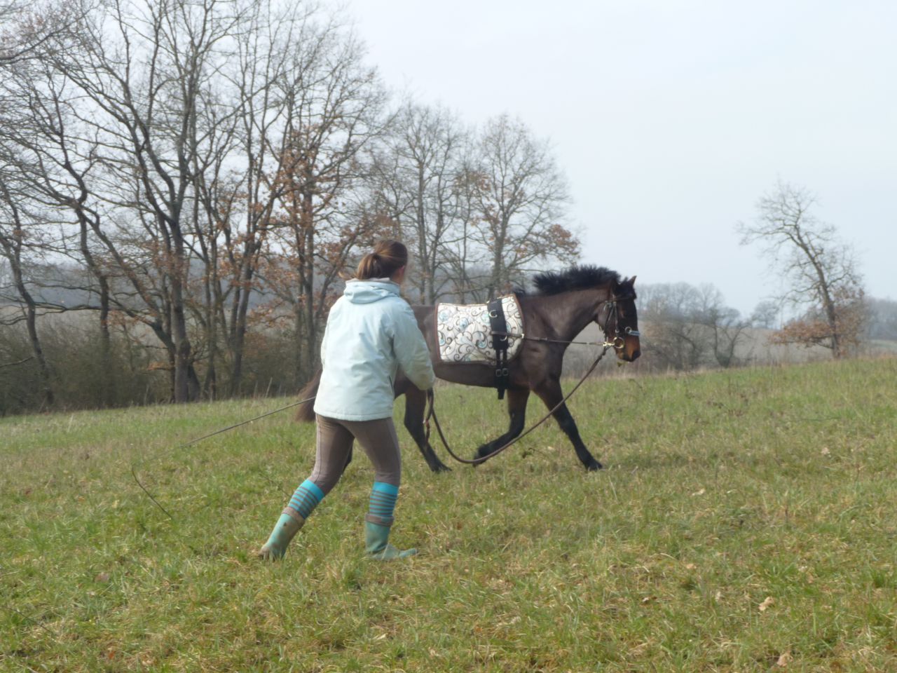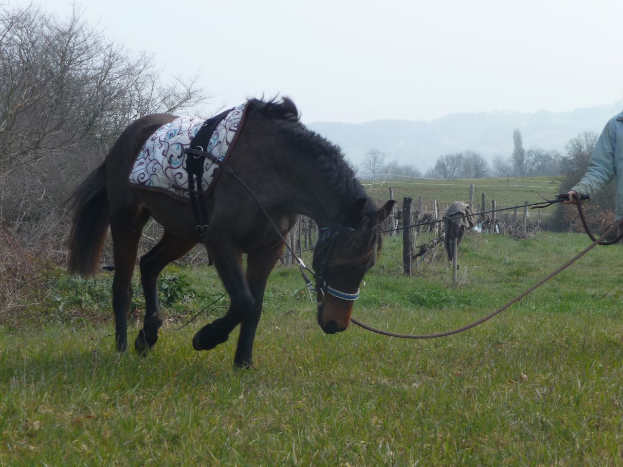 | Dire merci | mdr chacun son style oui je trouve qu'elle bosse mieux la tete un peu plus haute, ça l'oblige à vraiment relever le dos (parce que bon la tete en bas vu sa souplesse c'est pas trop de l'effort pour elle en longe, meme si je la laisse dans cette attitude pour la détente et la fin ..) |