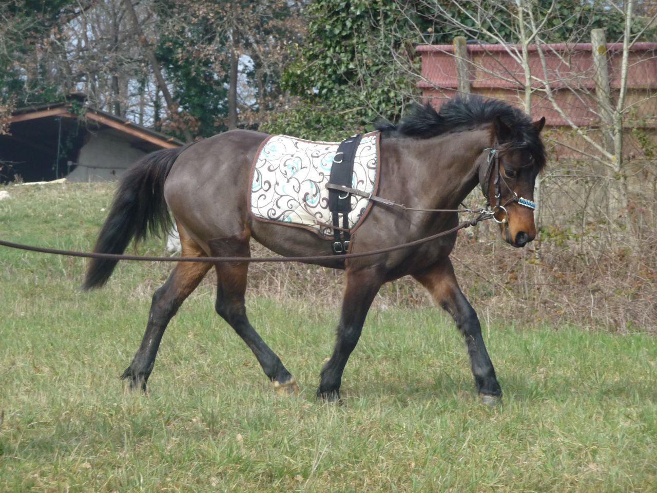 | Dire merci | Cette petite ponette a débarqué dans mon centre equestre un lundi 5 novembre 2009 tout droit sortie de chez un marchand avec 3 autres poneys. Ce jour là, mes moniteurs étaient allés chez un marchand voir des poneys pour agrandir leur cavalerie. En effet ce marchand venait de recevoir des poneys qui arrivaient d'une longue traversée. Les premiers venaient de Hollande et des poneys se sont aussi ajoutés en Belgique avant d'arriver chez ce marchand, dans le sud ouest de la France. Donc ils vont voir ces poneys au pré et en choisissent 3 pour le club, et ils voient cette petite ponette toute maigre avec une longe de 3 mètre attachée au licol pour pouvoir l'attraper. Mis à part son piteux état, c'est une très joli ponette plein papier qui vient de Hollande, il la prennent donc dans le lot dans le but de la retaper puis de la valoriser pour ensuite soit la vendre soit la mettre à la saillie. C'est donc ce mercredi pluvieux qu'était le 7 novembre que je l'ai rencontré pour la première fois. Elle était alors agée de 3 ans. ![]() ![]() avec les 3 autres poneys achetés chez le marchand ![]() Ce message a été modifié par un modérateur. |