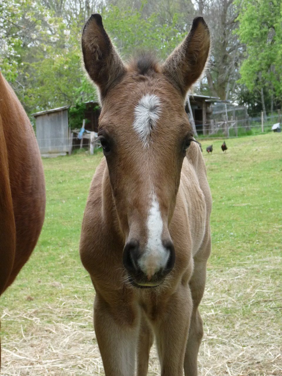 | Dire merci | pour faire patienter Sahel, quelques photos de ma poulichette, née le 7 Août 2013 après 2 années d'attente et moultes péripéties... Je vais pas me plaindre, j'espérais une fille ![]() Voilà la plus belle, le 1er jour de sa vie : ![]() à 3 jours... elle ne gère pas encore le freinage d'urgence ![]() Je sais pas ce que t'en penses Katia mais elle me fait TELLEMENT penser à son père ! (beaucoup plus qu'à Nini !) ![]() Enfin BREF... j'ai eu ma pouliche de Névé et Thooz ! ![]() |