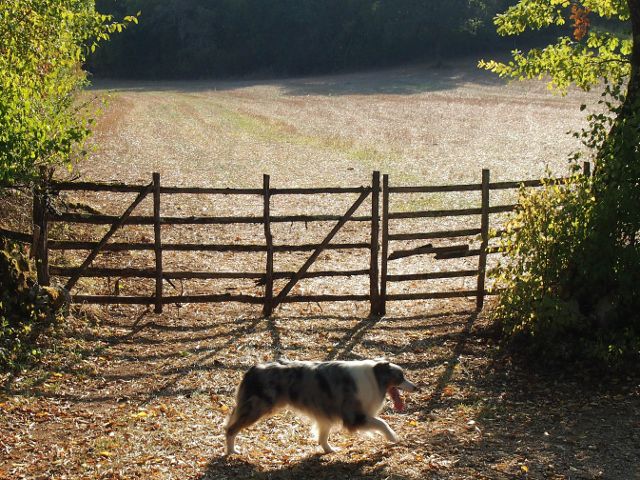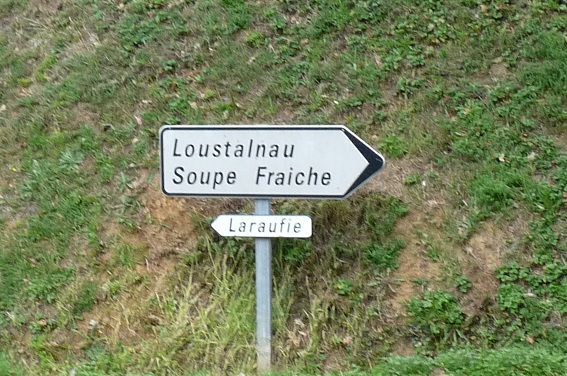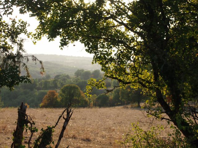| Dire merci | (c'est vrai que quand je vois cette photo, je suis assez fière de moi, c'est collector! )Le soir, on dormait chez l'habitant. Après avoir un peu galéré pour qu'on nous prête un bout de champ, on a finalement bien dormi, sous la tente, malgré le froid. (merci à nos zhoms d'avoir amené de quoi se réchauffer) Le lendemain, enfin un peu d'éclaircies, on reprend la route, bon pied, bon oeil. Flicka a parfaitement joué son rôle de bât ![]() Le Nord du Lot est très différent du Causse central. Terres plus profondes, et terres de côteaux en prenant de l'altitude. On y produit un petit vin EXCELLENT: le côteau de Glanes ![]() Traversée de je-ne-sais-plus-quel-village ![]() J'adore le nm des lieux-dits, y'en a toujours de savoureux! ![]() Et la halte de midi, à l'entrée d'un bois, près d'une maison perdue au milieu de rien ![]() |
