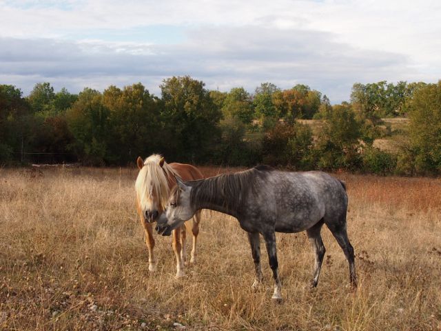 Déconnecté | Merci Oc Je suis assez contente de leur état car ce n'était pas gagné. On a dû les séparer des autres car ils avaient tous les ans de terribles demangeaisons (certainement des dermites) sur nos terrains du Causse. Et Calin a fait un début de fourbure l'année dernière au printemps et reste encore très sensible mais plus jamais de fourbure ( que ça dure ) Comme ils étaient enrobés tous les deux, ils ont droit maintenant au régime sec et Calin a retrouvé une super énergie. |