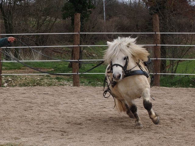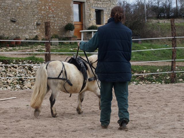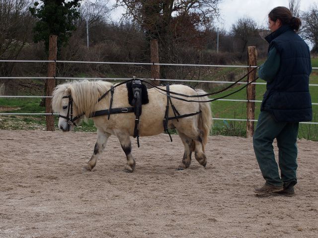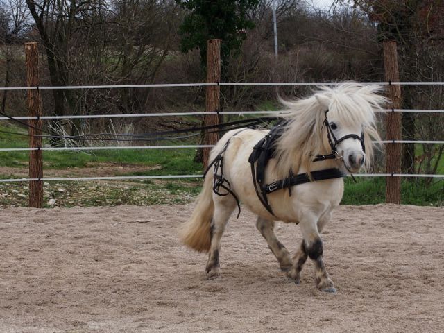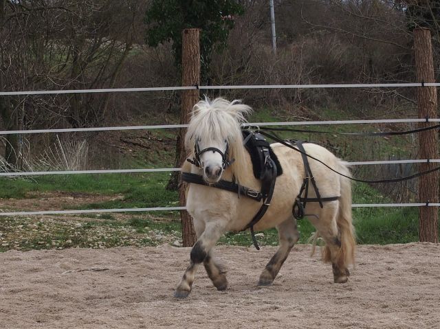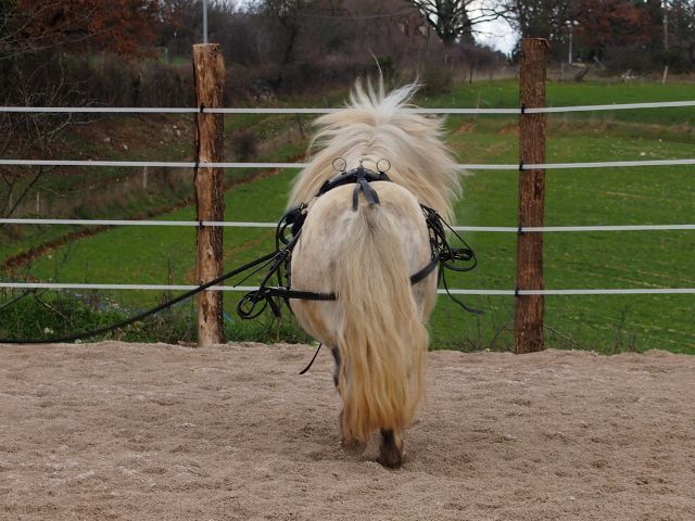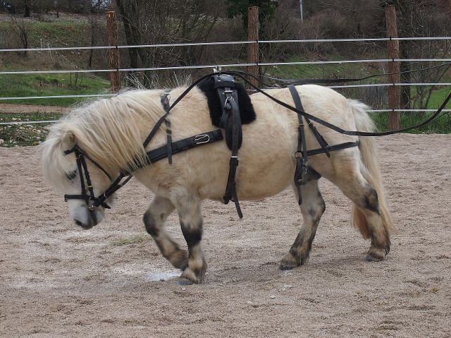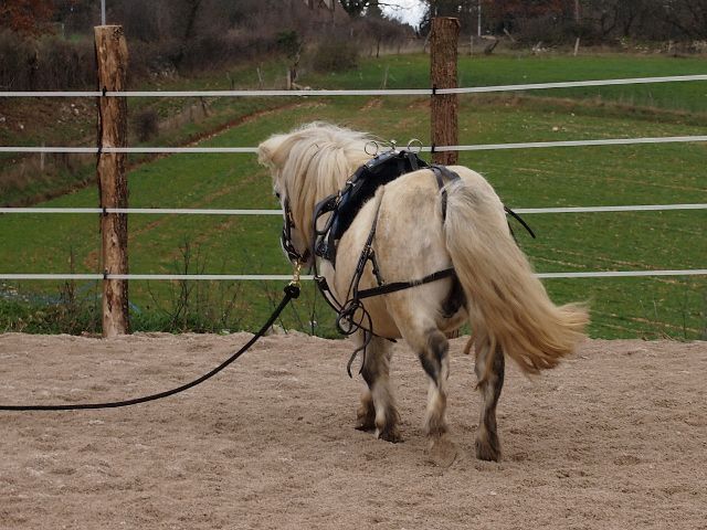 Déconnecté | Ce matin essayage du harnais complet sur Radja, j'en ai profité pour faire une petite séance de longues rênes. Rien à dire, super poney ! Pourvu que ça dure ! Il a fallu avant décrasser la bête! |