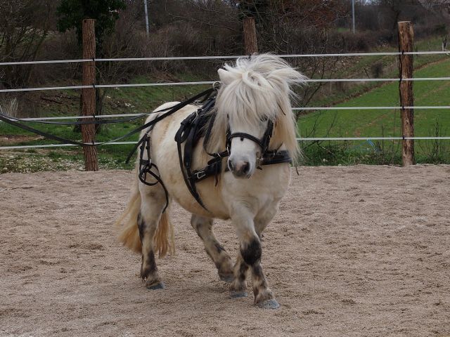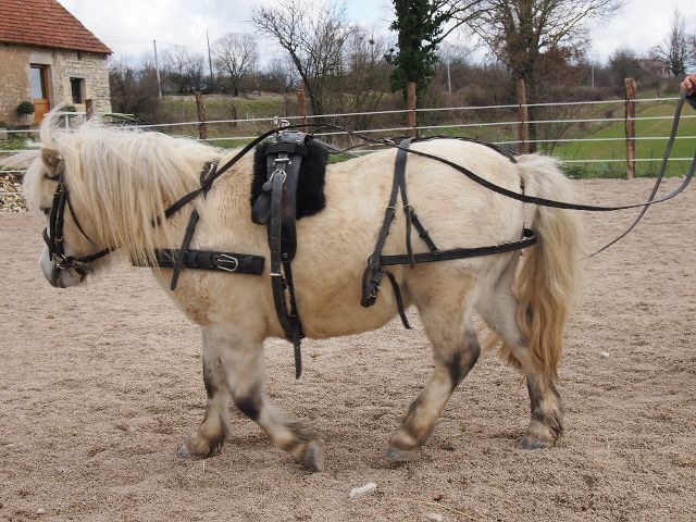 Déconnecté | Je vois que nos nains sont super polyvalents et moi aussi je leur en ai fait voir ! Le tien est encore jeune vous avez encore pleins de choses à partager ensemble.Mon matèriel d'attelage a était acheté il y a une quinzaine d'années dans une grande sellerie de L'Oise pour le Harnais mais on a du le faire reprendre entièrement car trop grand pour Calin. Pour se qui est de la voiture (avec mes parents on cherchait neuf avec ammortisseurs ), nous avons eu beaucoup de mal a trouver car soit des entreprises pas réglos, soit des prix .Finalement nous avons trouvé un petit sulky d'occas comme on voulait . |