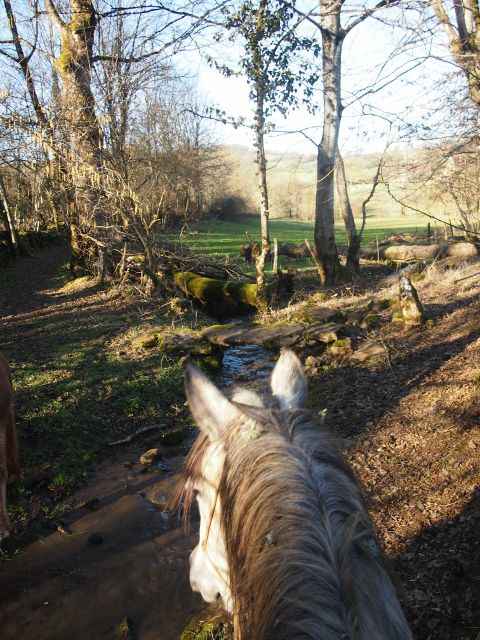 Déconnecté | merci, le prochain tableau est un "cochon marin" Aujourd'hui, grand soleil, super motivés avec mon copain J. , on en a profité pour partir en expédition avec Vihkinn et Pépée. Direction la petite ville d'Alvignac, à une demi heure de route. Les chevaux ont été exemplaires, surtout Vihkinn qui n'avait pas été monté depuis presque 2 mois c'est parti pour 2h30 de balade. |