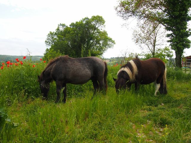 Déconnecté | Jivago, si au début j'étais même très inquiète qu'ils me fassent une fourbure ou un truc du genre car je n'ai jamais eu de shets aussi dodus (les miens sont assez "fins" ) et pourtant Calin m'en a fait une il y a deux ans c'est pour ça que les poneys sont séparés des grands maintenant, pour mieux gérer leur alimentation (régime dès le printemps )Ils sont au pré (avec de l'herbe) que depuis cette semaine seulement quelques heures par jour et le reste du temps dans un grand box ensemble. Et quand ils étaient dehors H24 sans herbe, ils avaient foin et paille très rationnés mais aucune perte de poids. En fait ils ne sont pas si gros que ça (je vous assure ! ) on sent même leur côtes |