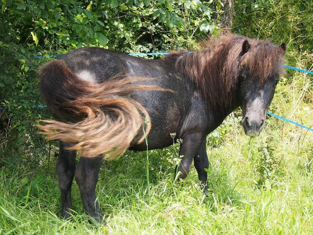 Déconnecté | Ca fait un bon bout de temps que je ne suis pas venue donner des nouvelles du troupeau. Du côté des shets, ça progresse tranquillement. Vallti a été monté deux fois : une fois pendant une petite balade, juste à l'arrêt et une autre fois dans le rond, avec déplacement des hanches et un peu de pas. Très bonne réaction de sa part. Nous avons fait notre première sortie en attelage avec Radja mais il y a encore des modifs sur la voiture et avec notre boulot, ça prend plus de temps que prévu. On s'est fait quand même plaisir avec cette mini sortie !! Il a bien réagit en passant devant le pré des entiers et ensuite celui des juments... vivement la suite !! Le petit Dabbhu est devenu tout gris, il continue à grandir aux côtés de papa et maman. Quant aux grands, on continue les balades mais comme je suis souvent seule et que je vais quelques fois dans la semaine monter d'autres chevaux plus le boulot à la ferme, on fait des sorties plus courtes ou bien je les travaille dans le rond en longe et en liberté, j'essaye de varier un peu. On va aussi quelques fois surveiller nos brebis en plein air à cheval. |