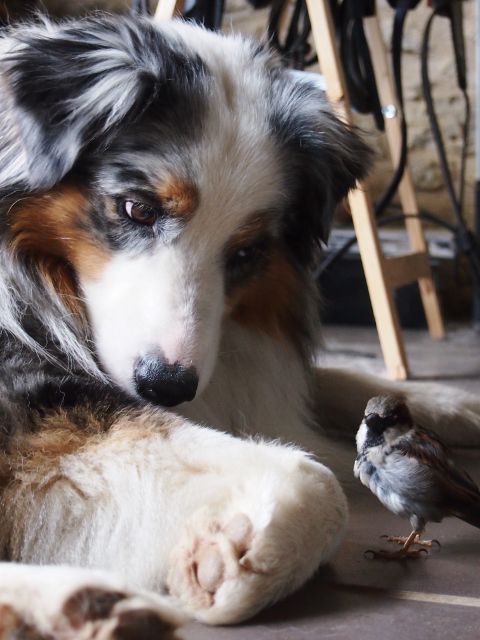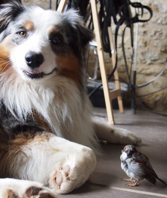 | Dire merci | super jolies toutes ces photos! excellent Radja à la charette ! et il est toujours aussi beau avec sa belle crinière (le mien n'en a pas autant ) petit poulinou grandit/grossit bien !! et supers chou les photos de ton b.a avec le petit oiseau |