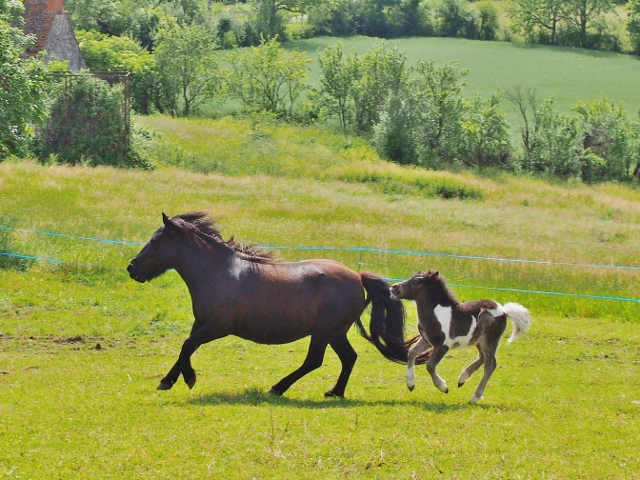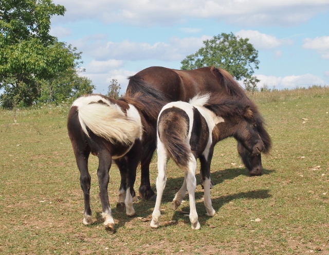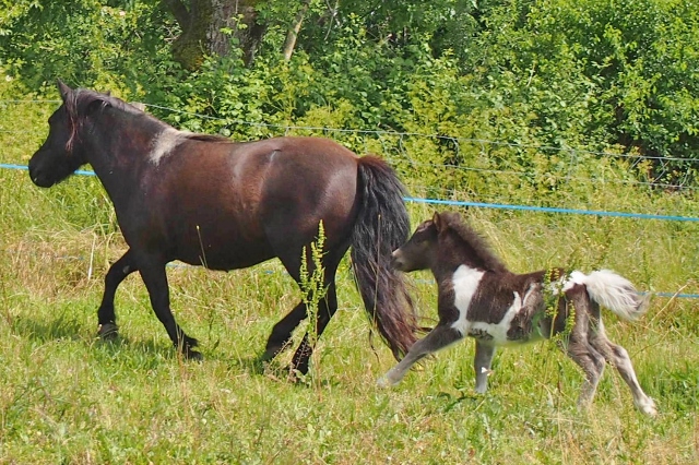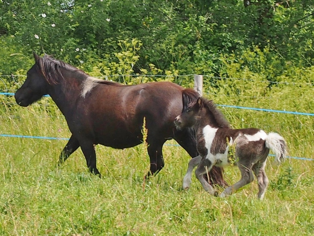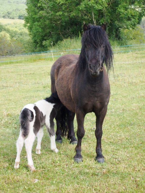 Déconnecté | Bonjour, je viens donner quelques nouvelles et partager quelques photos au passage Honnêtement, je pense que ça va être difficile de vous recevoir cette année les filles , le temps passe et on a toujours un truc à faire. Et puis on espère pouvoir partir quelques jours en septembre Les petits shets grandissent, ils comment à marcher en longe comme il faut (les débuts étaient mouvementés ), ils donnent les pieds sans problème, le licol est acquis depuis longtemps !Je suis allée en balade avec Valtti dimanche dernier, à pieds et monté au bord de la rivière du Célé. c'était très drôle : Valtti le poney super peureux a plongé dans la rivière et partait à la nage avec moi accrochée au bout de la longe (alors que je n'avais aucune envie de me baigner surtout en jeans, baskets et portable dans la poche )En tout cas le poney s'est régalé, il adore l'eau. Il a pu nager, se rouler ... Très bien pour une première sortie avec l'étalon sauvage On a fait ensuite une super balade en famille sur le causse et retour en van à la maison. Et hier nous sommes allés dans les Hautes-Pyrénées faire confirmer Bimbo, on a passé une bonne journée, un peu fatigante et stressante pour ma part mais Bimbo a assuré ! J'ai des photos de son passage |