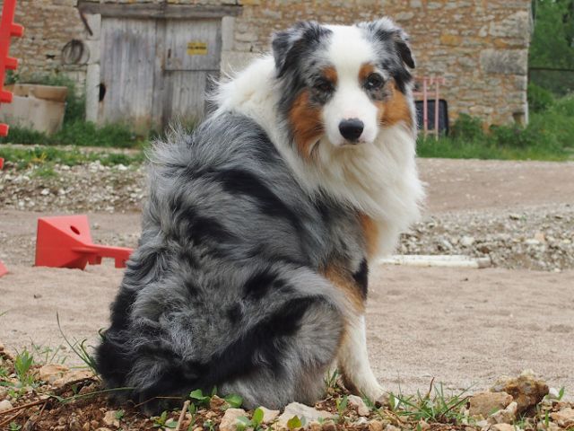 Déconnecté | C'est ici le post des bergers australiens ? Oc, le mien est totalement diffèrent de la tienne sauf pour son intelligence, moi non plus je n'avais jamais vu ça Alors j'explique : on a eu Ermès à 8 semaines et des brouettes. (chiot le plus costaud et le plus joueur de la portée )Arrivé à la maison une horreur, bébé surexité,envahissant, insupportable... à devenir fou (les maîtres )Par contre il est devenu très vite propre, jamais destructeur reste seul sans problème. C'est notre chien de compagnie, il vit avec nous dans la maison. Maintenant, il est très calme quand il est seul avec nous(il a aujourd'hui 3 ans) mais toujours très difficile à gérer avec d'autres personnes.( très envahissant) Je ne rentre ps dans les détails car j'y passerais la nuit A côté de ça c'est le toutou IDEAL pour se balader à pied ou à cheval, on peut faire 30 ou 40 km sans l'attacher, passer dans Rocamadour en liberté, il est super obéissant. Il dort même avec nous dans la tente ! Il connait énormément de mots et quelques petits tours, il adore ça Je n'est jamais osé retourner chez son éleveuse et il n'a jamais pris de cours de dressage, c'est un tort mais il n'est pas trop tard C'est docteur jekyll et mister hyde |