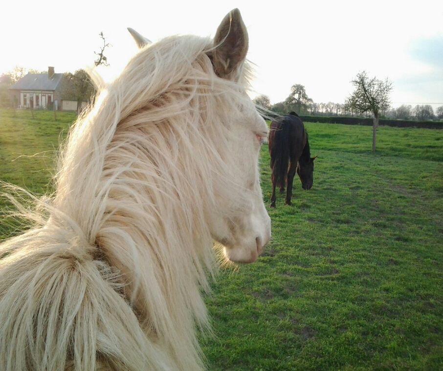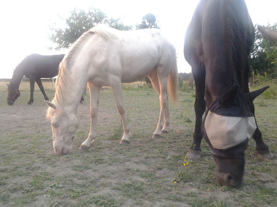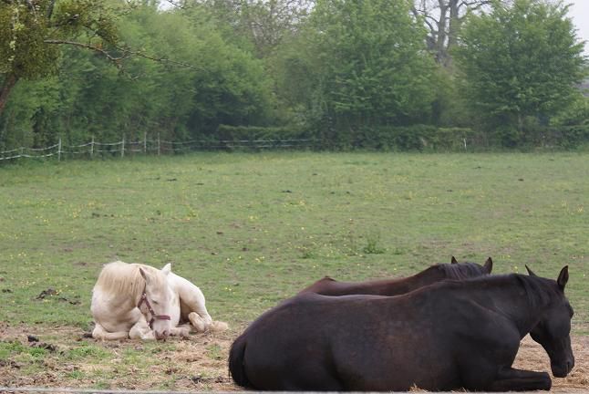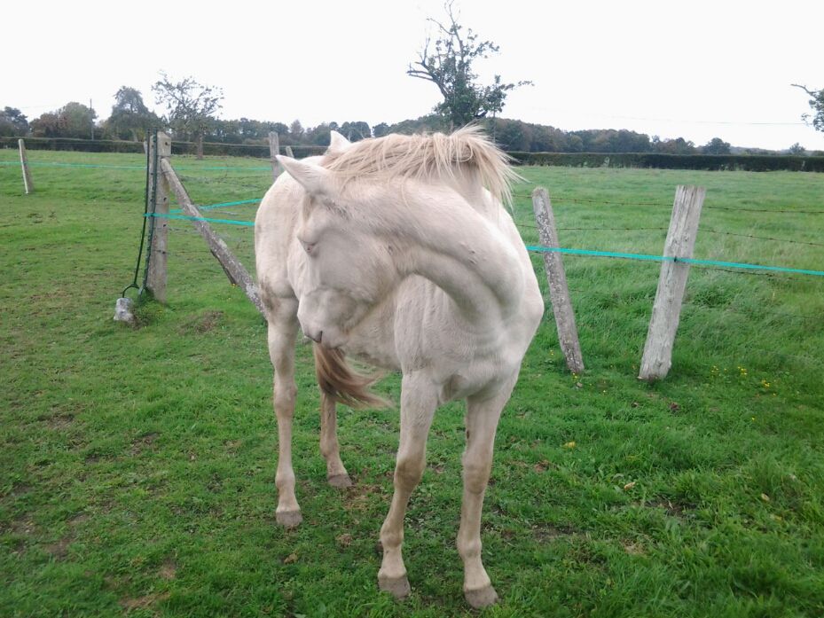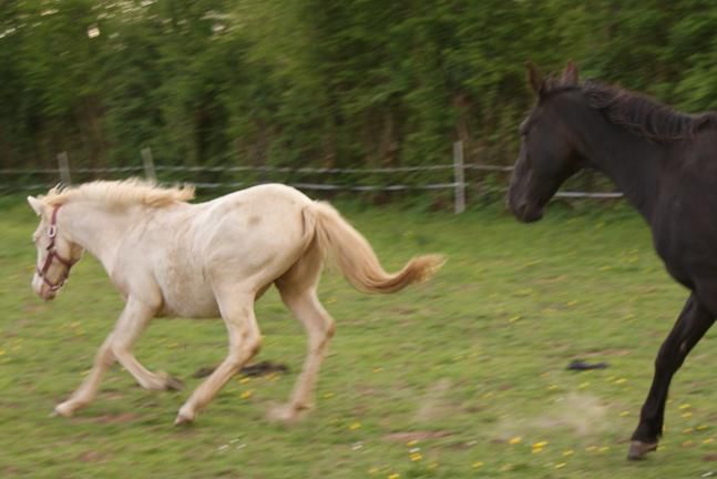 | Dire merci | Papin = son+eau de javel ? Le véto m'a dit de lui faire ça, il lui a fait une radio pour exclure la fêlure car ça lui paraît bizarre qu' il ait autant mal avec un abcès. Bref, j'ai l'impression d'etre toujours au même point. Aujourd'hui changement de pré et quand en soirée j'ai voulu faire mes papouilles habituelles avec Centella celle-ci n'a pas voulu genre "nan pas ce soir je suis pas d'humeur" Pppffff ses jeunes |