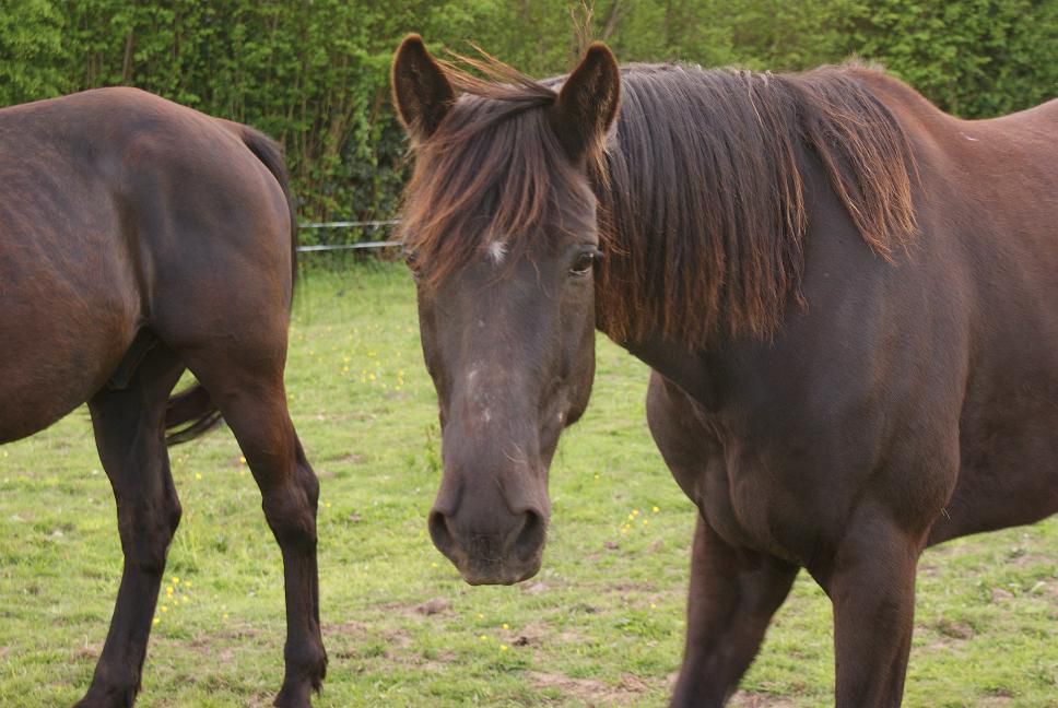 | Dire merci | c'est vrai qu'elle a une sacrée encolure mais quelle douceur, pour moi elle est simplement Le week end dernier, elle nous a fait une belle frayeur. Mon papi est boiteux d'un anterieur, le veto ne trouve pas d'abces donc conseil de le laisser 5 jours tranquille au "box". J'ai hesité a mettre centella avec lui bah j'aurai du, ma douce nous a fait une colique de stress. Le veto a été genial et centella a été impeccable (meme pendant qu'il l'a fouillé). Bref, un grand moment de stress pour olivier et moi mais c'est arrangé ouffff ps : le veto a ete bleuffé par la gentillesse de la pouliche , merci lilou |