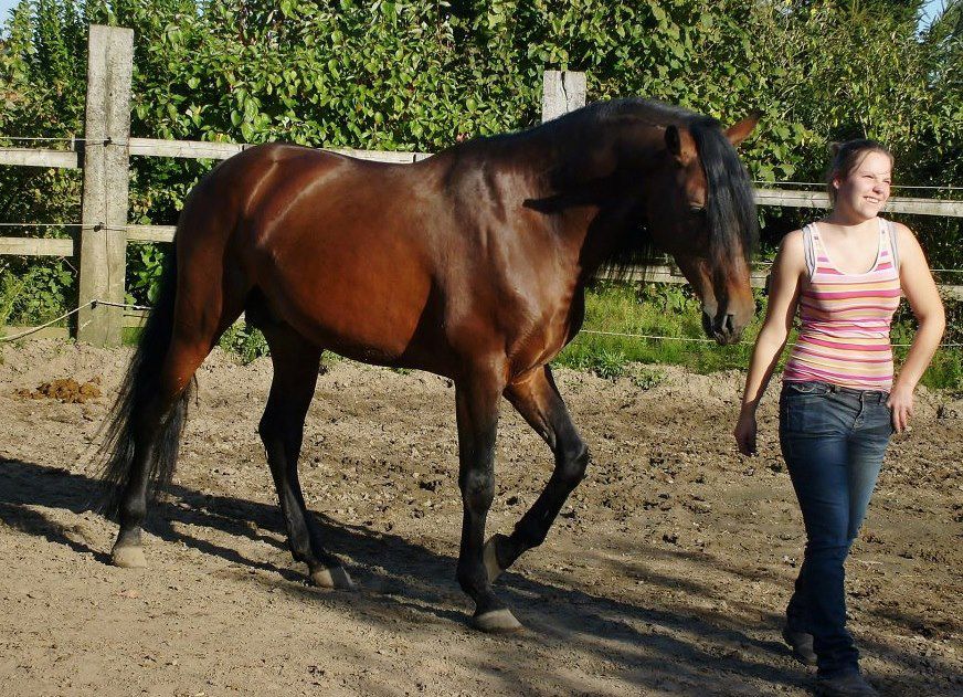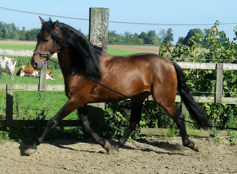 | Dire merci | Parce que tout doucement notre élevage de PRE et de sBs commence à prendre forme, avec l'arrivée de nouveaux chevaux et la progression des anciens, je tiens à vous re-présenter ceux qui partagent ma vie ! Tout d'abord, Risueño, entier PRE né le 21 mai 2004 1m60. Mon cheval, de très belles allures et beaucoup de force dans l'arrière main. Il a beaucoup de capacités pour le dressage. il a un passé pas facile, quand je l'ai eu, il avait peur de tous les mouvements et impossible de mettre le pied à l'étrier, il était paniqué ! Après un peu plus d'1 an et demi ensemble,pas mal de hauts et de bas et beaucoup de travail à pied, il s'est fixé sur moi et me fais maintenant confiance ! Je fais avec lui beaucoup de dressage et depuis 2 mois maintenant, nous faisons de longues ballades (Risu est en séjours vacances à la maison depuis maintenant 4 mois) Message édité le 03/10/12 à 11:57 |
