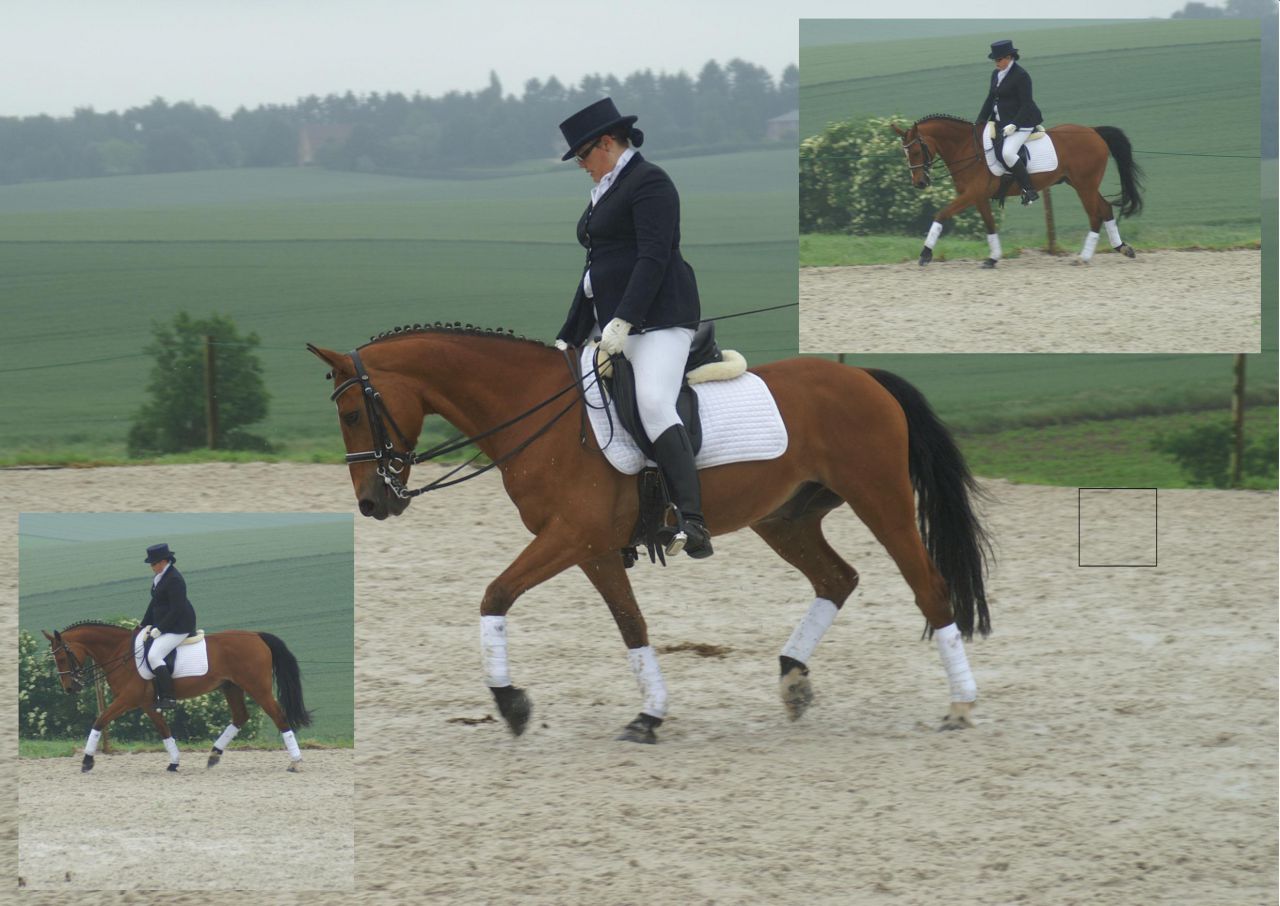 | Dire merci | Pas Pilou car au repos suite à un gonflement de son tendon mais ce jeudi leçon avec Kali et Xantio, une belle lumière et des chevaux super! ![]() ![]() ![]() |