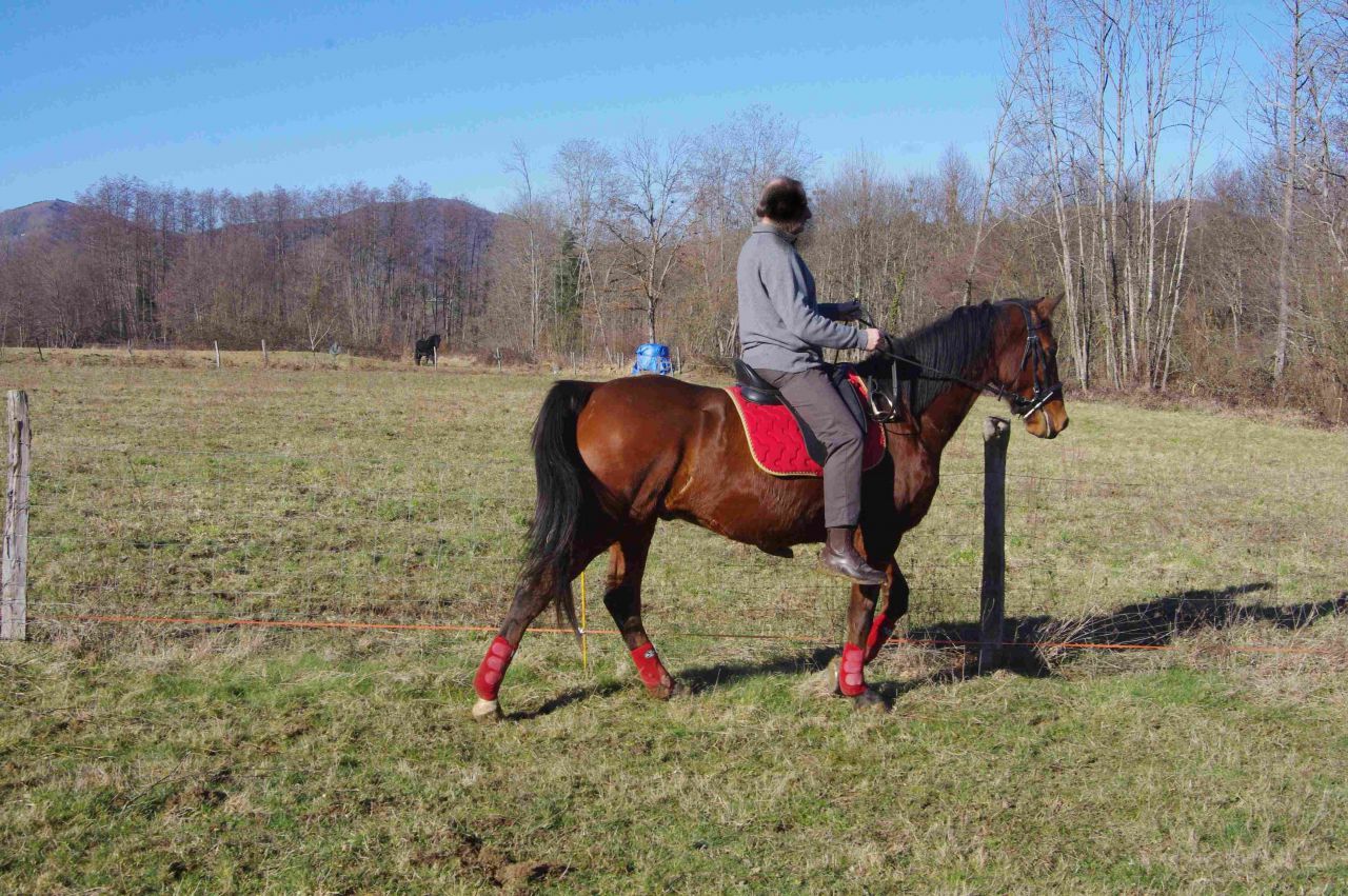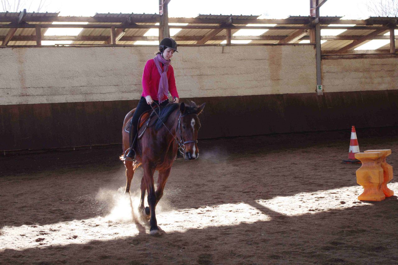 | Dire merci | W-e dernier : - samedi : ballade avec temps pas terrible et le froid mais fallait qu'il sorte le monstre vu qu'il sort pas la semaine! ![]() - dimanche : travail au manege, on essai de mettre en application les conseils de Karl. J'ai discuté avec mon instruct apres le stage vu qu'il était là, et en fait plus de rythme au trot et de pli qu'au stage c'est mieu pour l'extension! Donc on travaille comme ça, et Loulou est pas un peu de mal encore à tenir mais ça vient, on essai au CED/EED encore durdur. Juste 2 photos au manege EED ![]() Je le trouve pas mal la |