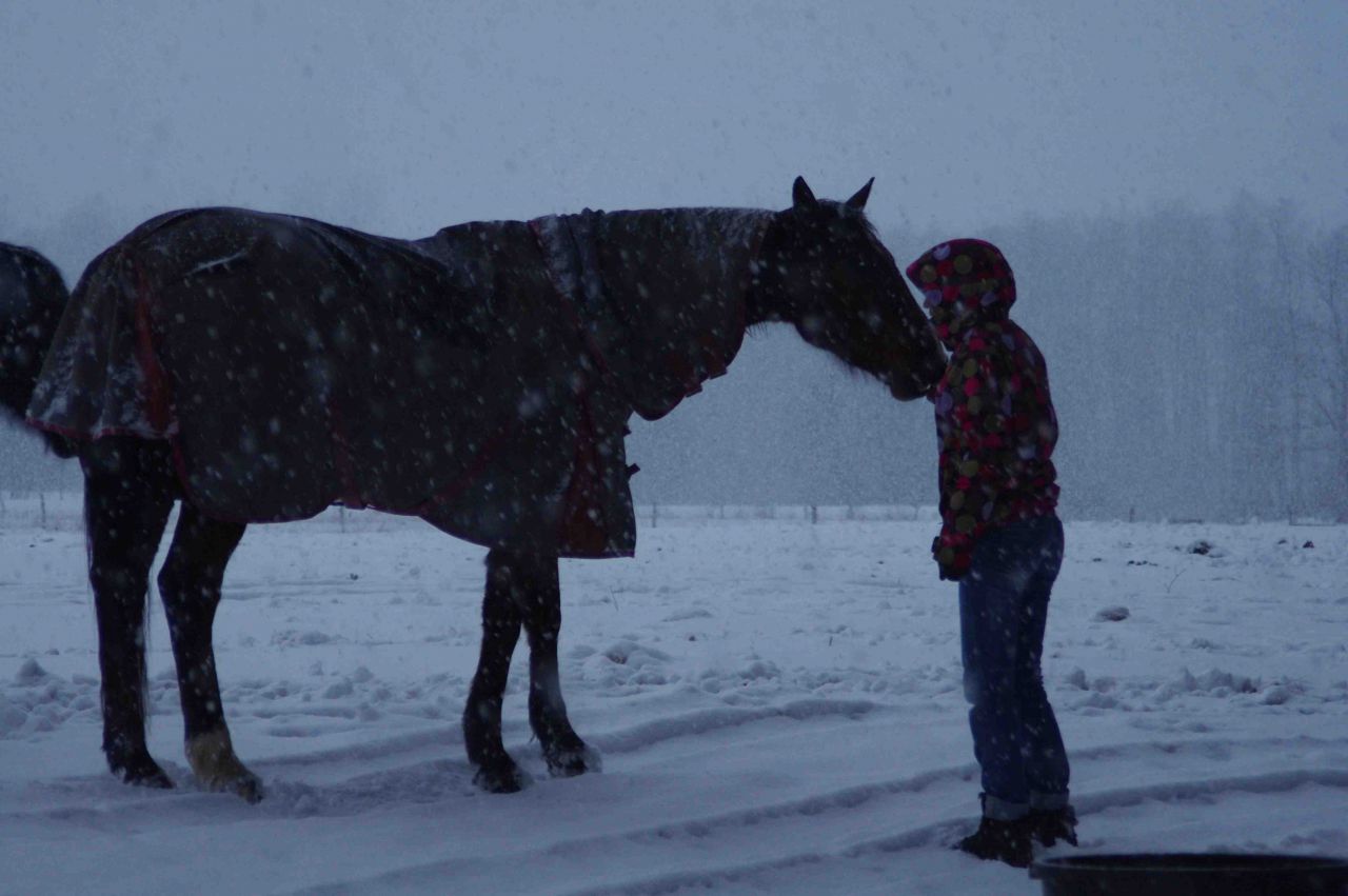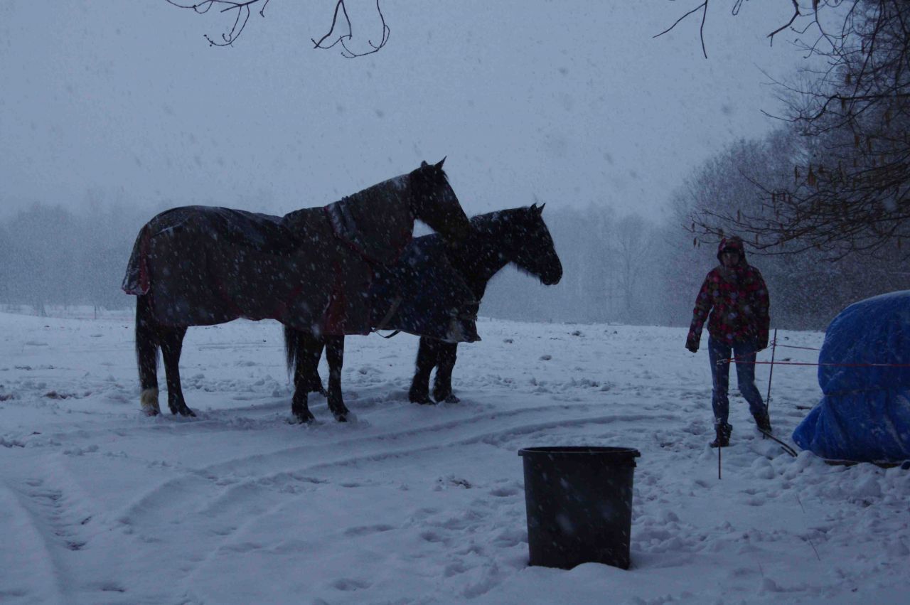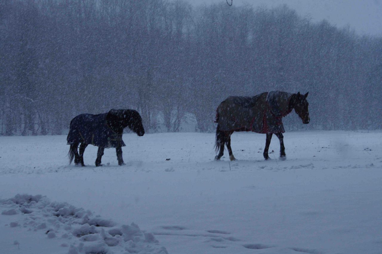 | Dire merci | Lil et marsu : C'est vrai que je ne penses pas trop aux barres de réglage, on est pas trop fan tous les 2 Mais je les voyais vraiment pour mecaniser et pas vraiment pour le geste.. Alors ici neige, neige et neige depuis samedi... Loulou glande donc bien dans son pré! Normalement vous aurez des photos sous la neige. Le stage de demain est reporté à samedi, heureusement, si je peux je ferais dressage le matin. |