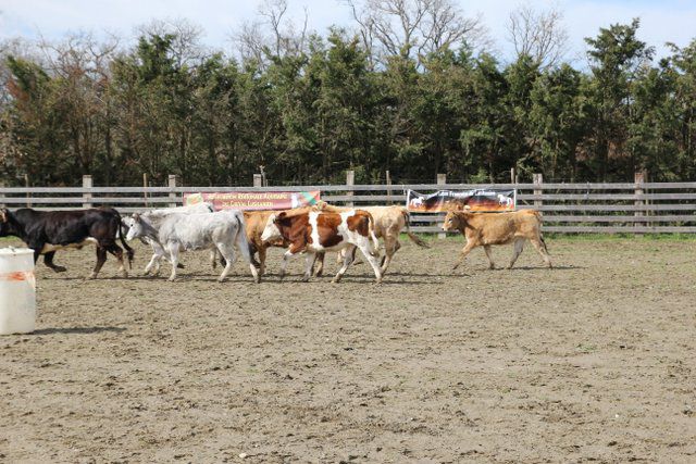 | Dire merci | Après leurs exploits sur le trail ranch, les chevaux entrent dans l'arène pour passer aux choses sérieuses ![]() Bizarrement, Lulu a changé d'embouchure ![]() Avec Réglisse... ![]() Ils se demandent ce qui les attends ![]() |