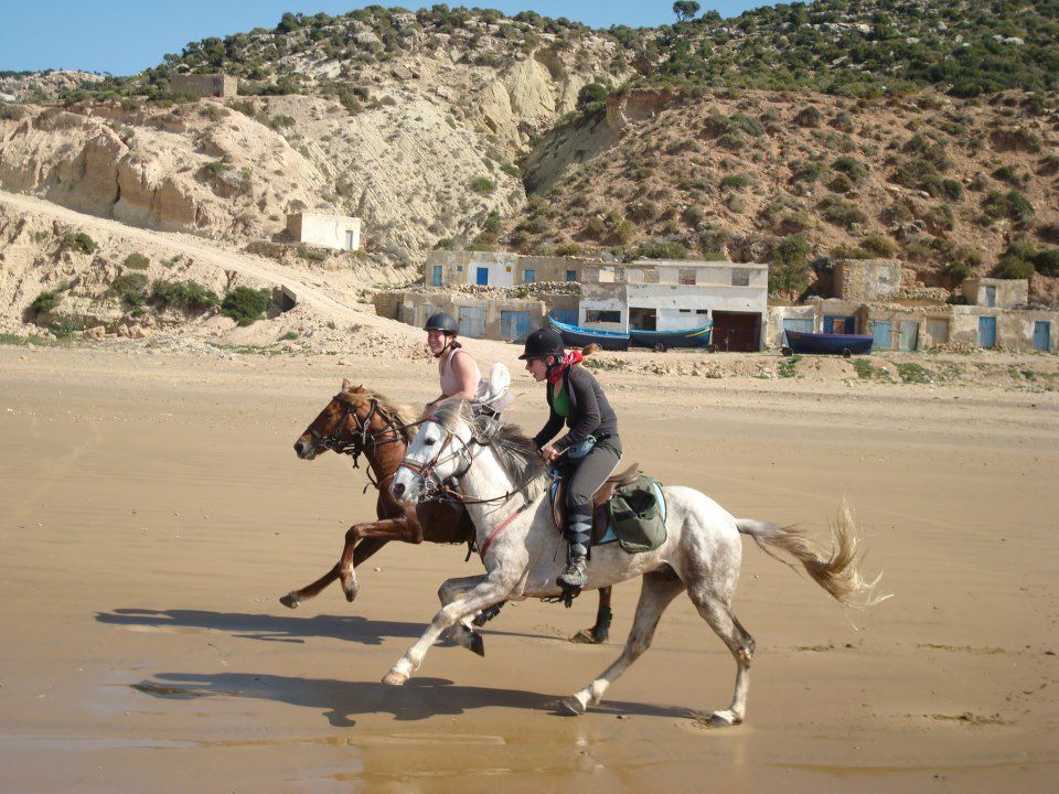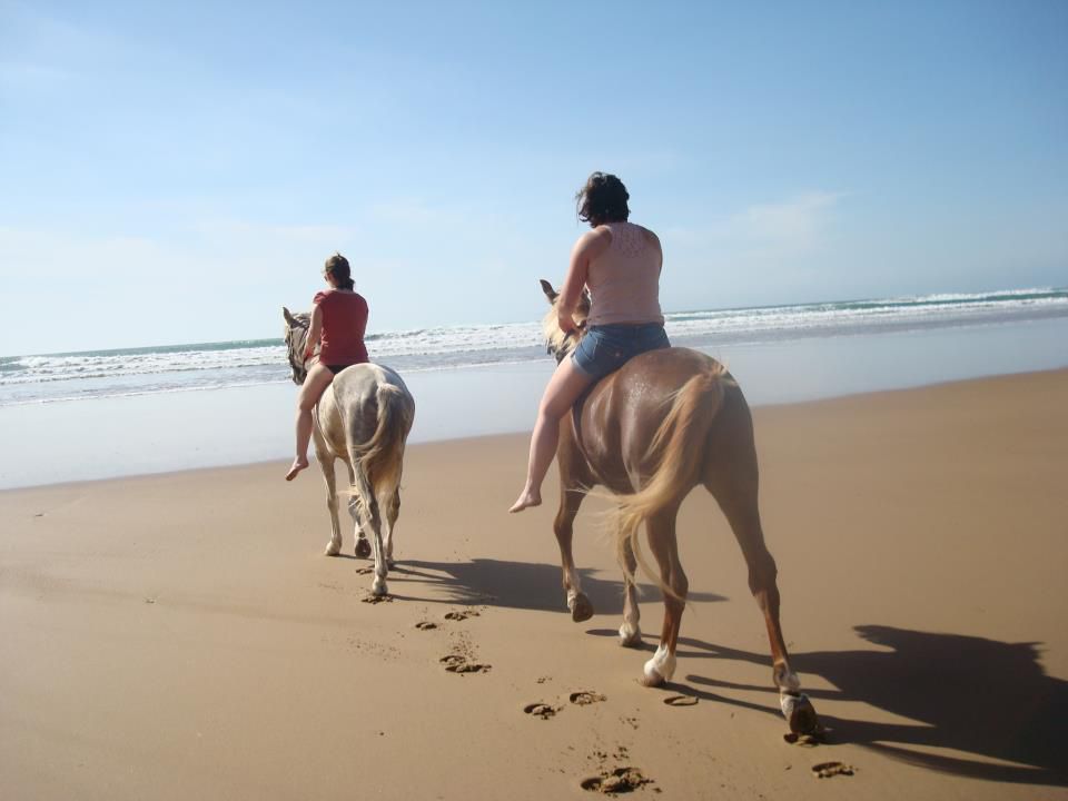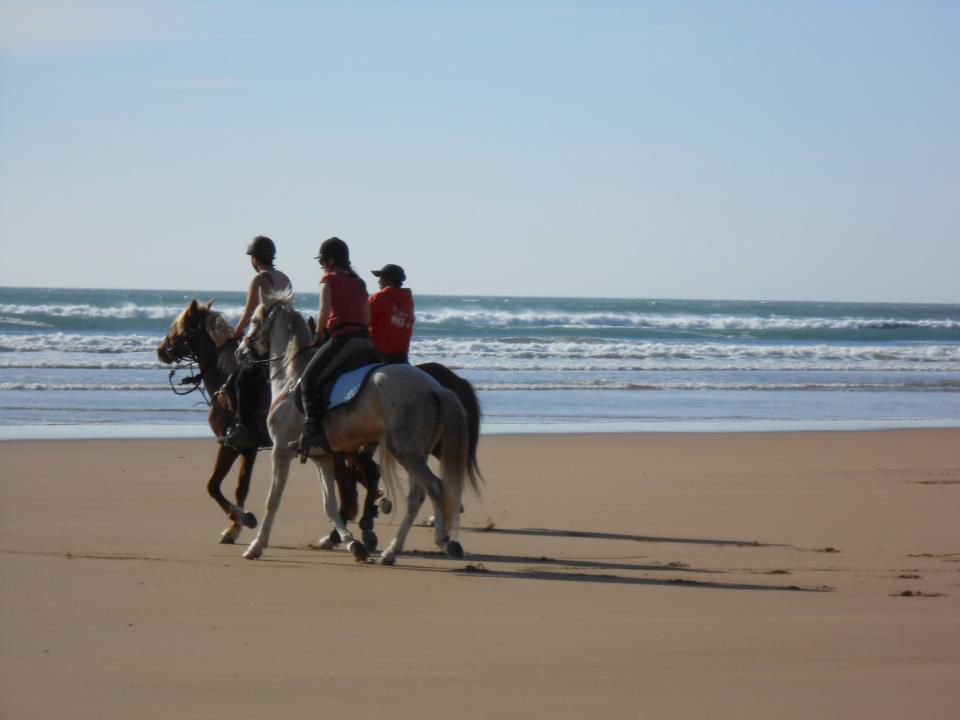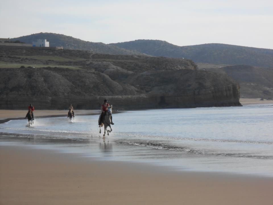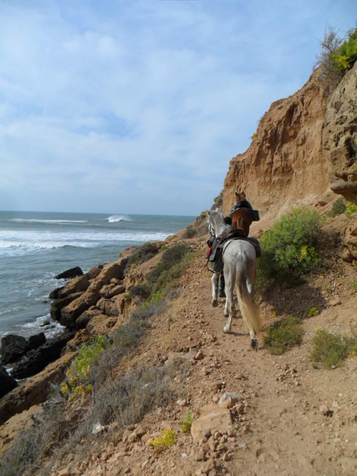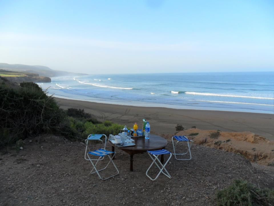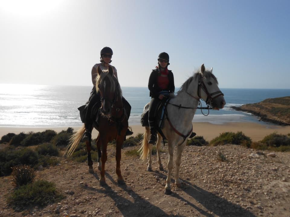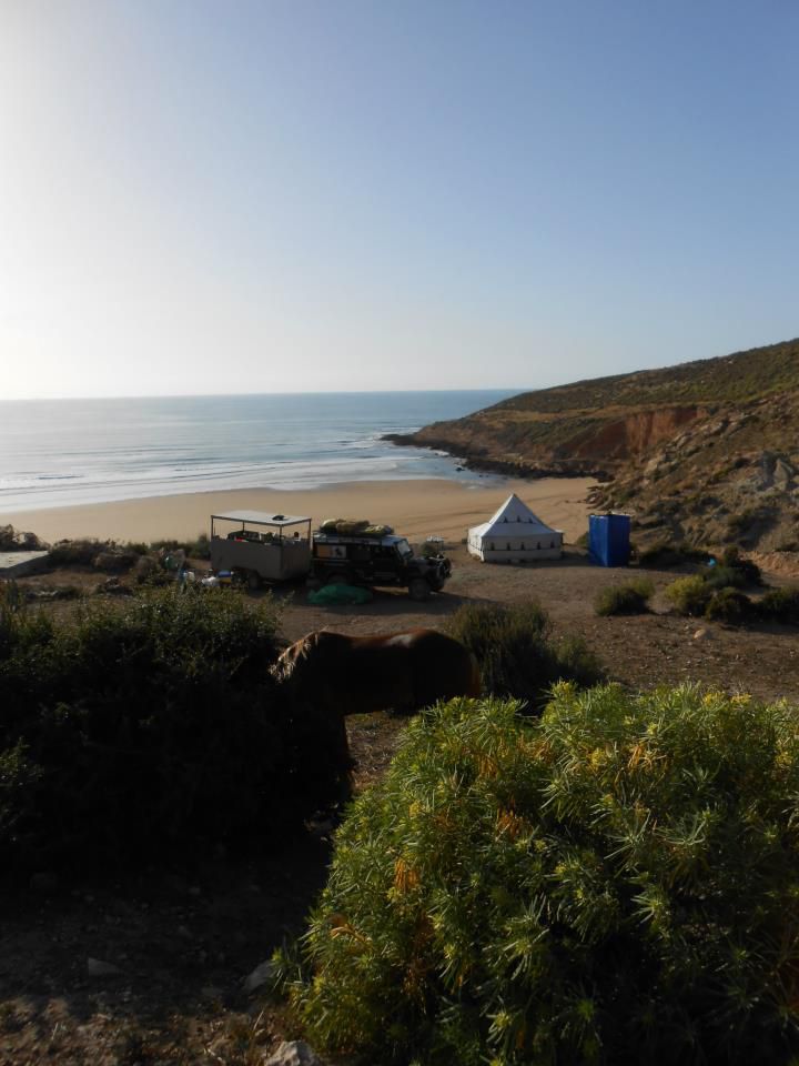 | Dire merci | Le soir on arrivait au bivouac vers 16h30, on s'occupait des chevaux, ensuite on prenait le thé puis on avait un peu de temps pour se laver, etc. A 19h on mangeait la soupe, puis à 20h des délicieux tajines entre deux, des parties de UNO et beaucoup de rires! ensuite on allait boire le thé autour du feu, et au lit de bonne heure parce qu'on était claquées!Quelques photos du 1er bivouac: ![]() ![]() ![]() Le 2ème jour en fin de journée on est arrivés au bord de l'océan, c'était magique! ![]() ![]() Le bivouac était sur les falaises, avec une vue à couper le souffle! ![]() ![]() |