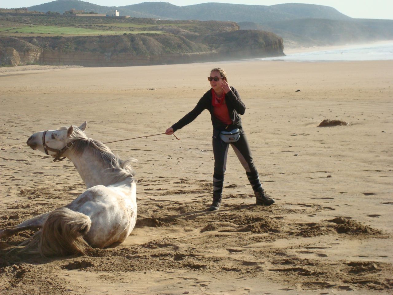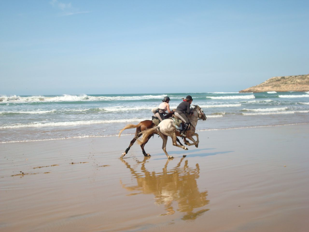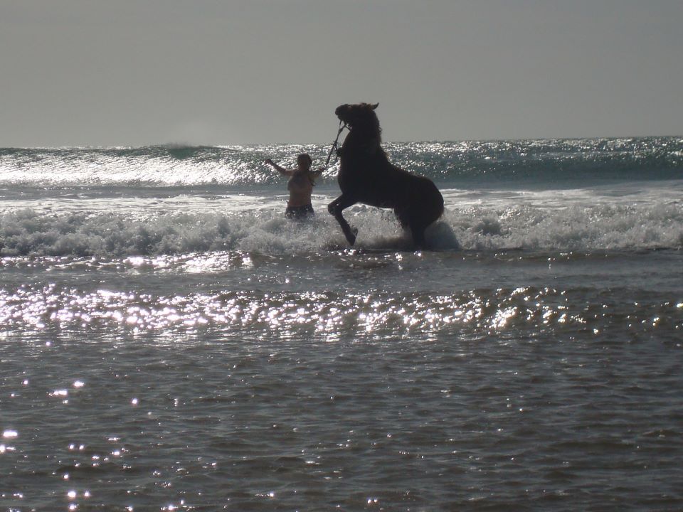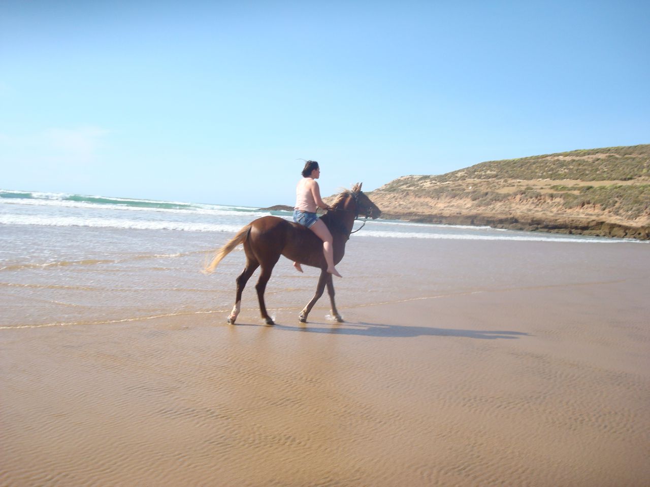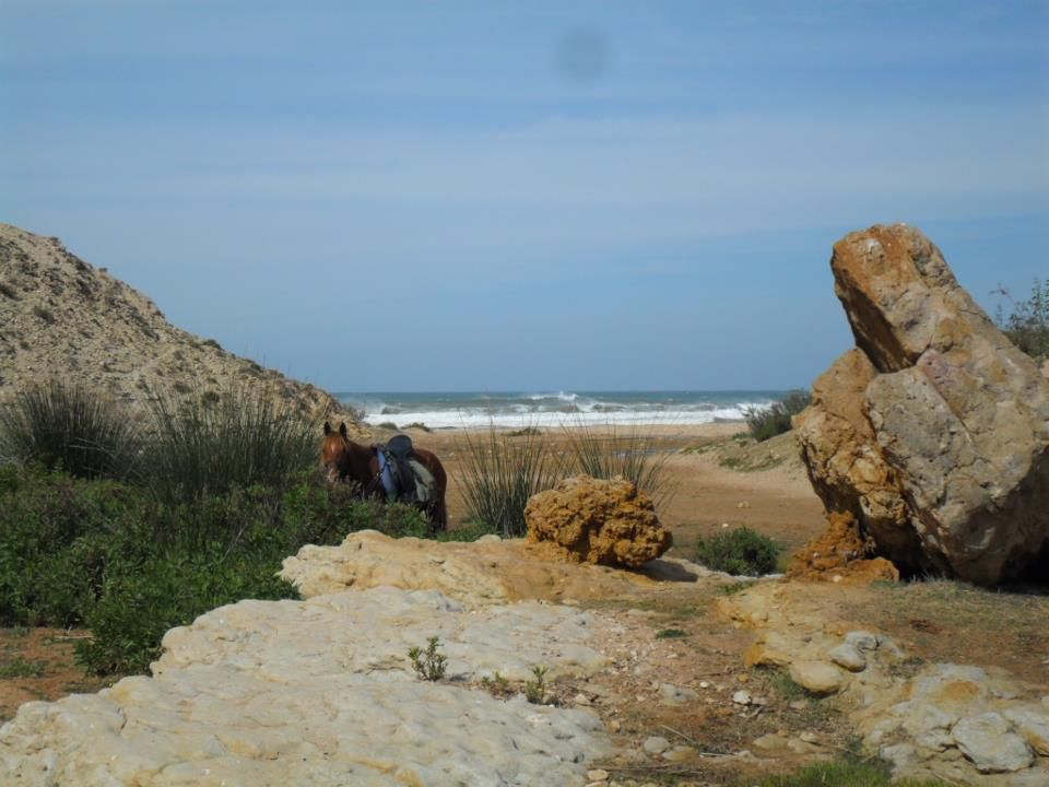| Dire merci | Le soir on arrivait au bivouac vers 16h30, on s'occupait des chevaux, ensuite on prenait le thé puis on avait un peu de temps pour se laver, etc. A 19h on mangeait la soupe, puis à 20h des délicieux tajines entre deux, des parties de UNO et beaucoup de rires! ensuite on allait boire le thé autour du feu, et au lit de bonne heure parce qu'on était claquées!Quelques photos du 1er bivouac: ![]() ![]() ![]() Le 2ème jour en fin de journée on est arrivés au bord de l'océan, c'était magique! ![]() ![]() Le bivouac était sur les falaises, avec une vue à couper le souffle! ![]() ![]() |