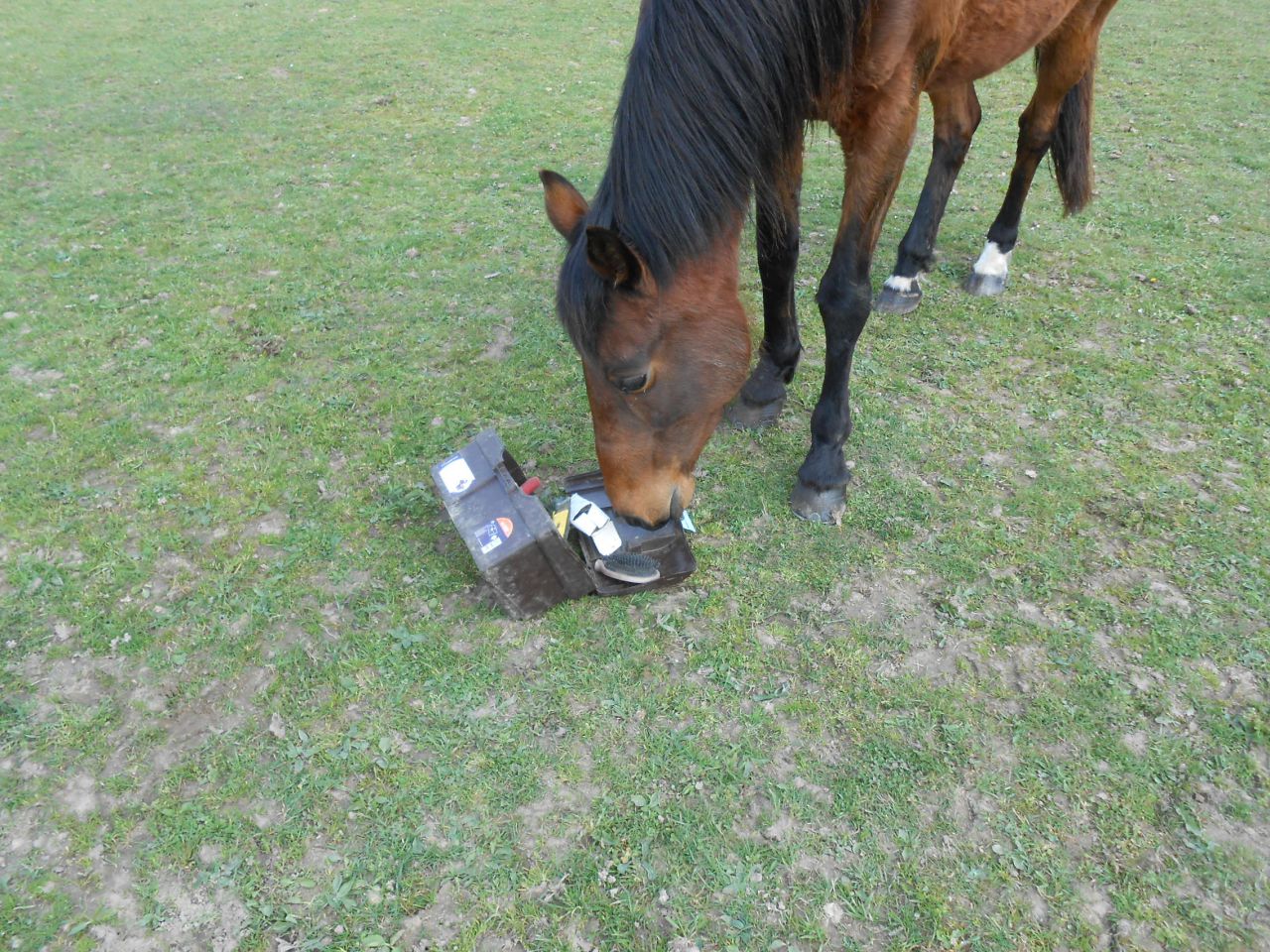 DéconnectéDire merci | Au programme d'aujourd'hui, petite balade en main en forêt avec la puce. Pas de photos car j'étais seule avec elle. D'abord, madame était un peu stressée de quitter les potes. Puis, elle a transformé la balade en balade gastronomique Ensuite, passage en forêt. J'avais repéré la veille des endroits où faire travailler les passages étroits mais au moment de l'emmener sur cet endroit, j'ai vu à terre....des bouteilles en verres J'ai juste eu le temps de la changer de trajectoire avant qu'elle ne marche dessus. ![]() Bref, retour au pré, pile au moment où la proprio de la pension ramenait les floconnés. J'ai eu un mal fou à la tenir pour l'empêcher de suivre le seau. Par contre, très agréable car pas besoin de la tenir pendant les soins : la tête dans le seau, trop occupée à manger, je pouvais faire ce que je voulais. Et voilà. Demain matin, si le temps le permet, je prépare un petit parcours dans le petit paddock et on le fait à pieds....puis à cheval. |