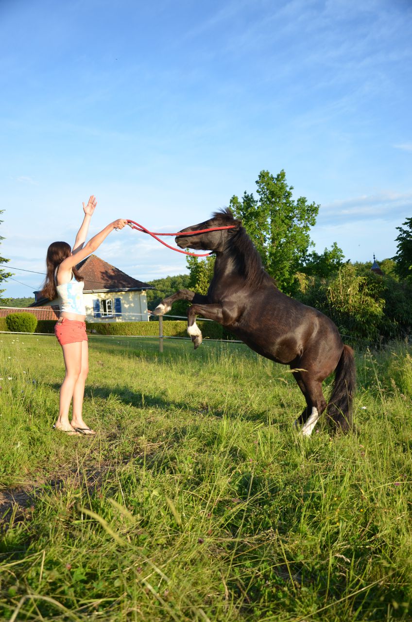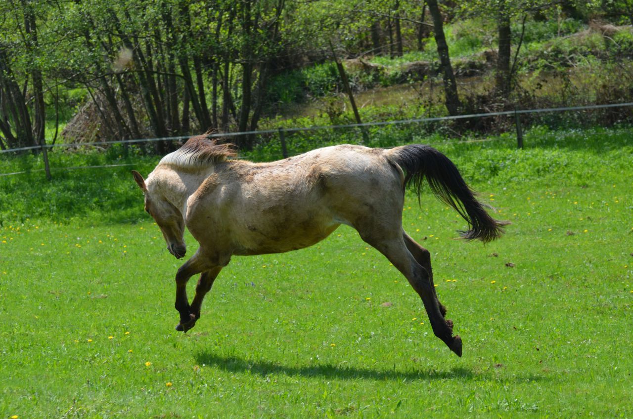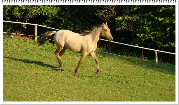 Déconnecté | ^^ Bah déjà elle est pas vraiment en croissance c'était surtout cet hiver qu'elle a pris des cm et puis depuis les photos que j'avais montrée début du printemps elle a quand même beaucoup changé ! Et en plus de cela je ne l'ai pas vraiment montée c'était juste quelques pas tenus pendant quelques minutes, c'est le commencement quoi ! Cet été il y aura quand même de fortes chances qu'elle soit débourrée sans être forcément bossée. ( Et oui du même élevage et de la même année il y a une jument qui sait déjà faire des changements de pied au galop et qui saute montée ) ! |