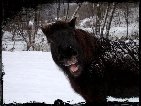 Déconnecté | Oui c'est ce que j'avais pensé d'autant plus que c'est un peu symétrique ... Et c'est bien ce que la véto a dit hier quand elle est passée, elle a dit qu'Avana faisait un peu sa mue de la même manière qu'un âne. La seule solution serait de la tondre au début de l'hiver parce qu'elle a un poil très très long et fourni pendant cette période. Mais bon on va pas tondre un cheval qui passe son hiver au pré et puis de toute façon dans un mois sa mue sera terminée normalement. |
