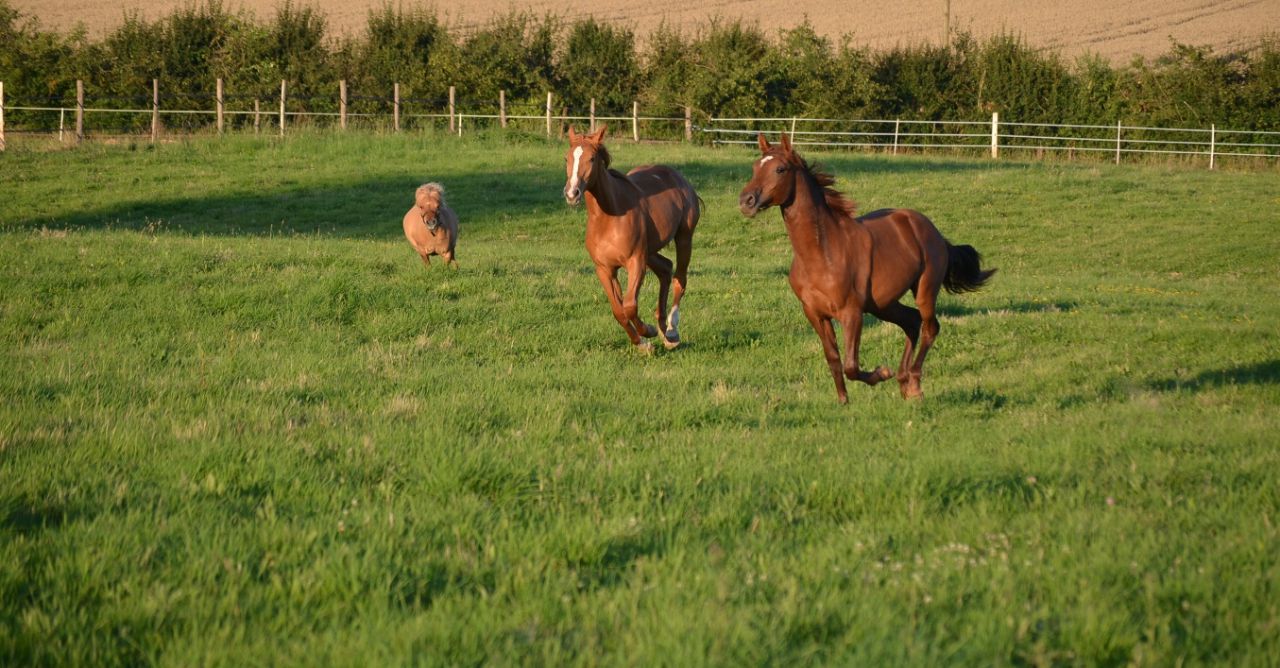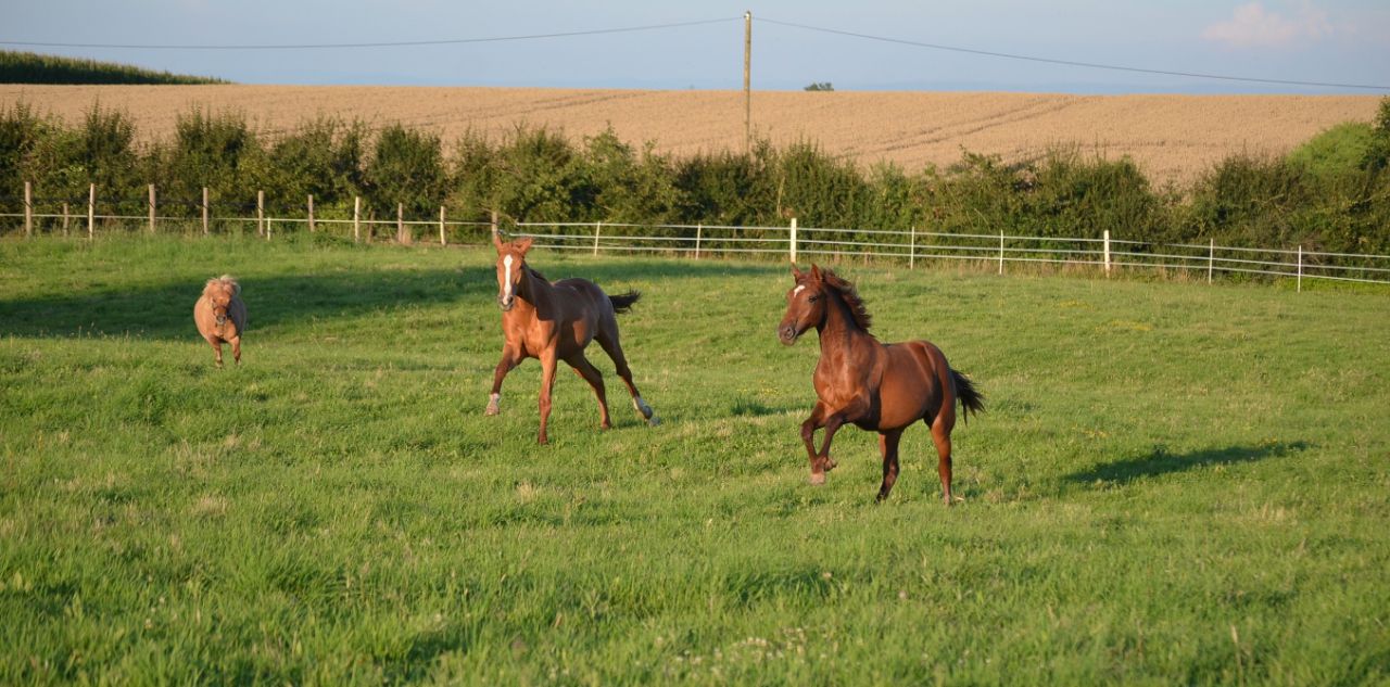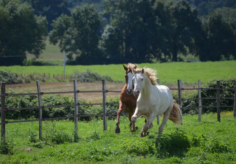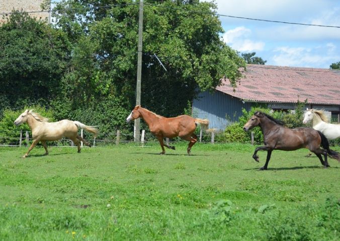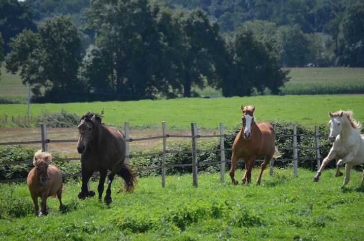 | Dire merci | Quelques nouvelles par ici: On continue le travail avec les poulains : Divino, Dandrane. Je prends même des cours particuliers en éthologie/travail classique en main avec un copain professionnel avec Dandrane!! On a bien progressé toutes les 2 ensemble c'est chouette!!!! Elle a désormais super bien compris la mise à distance, désormais j'ai juste à rester au centre de la carrière et elle évolue en liberté aux 3 allures en restant le long en changeant de main avec juste un mouvement de bras! ![]() Je vais commencer avec Divino cet exercice la semaine prochaine ! ![]() Beltis est au repos car il avait fait un très bon débourrage en ce début d'automne, il est encore très jeune, on y va donc tout doux! on reprendra en mars je pense pour les beaux jours! Véga des ballades de temps à autre quand le temps le permet! Divino continue les balades en main, la carrière, et sa vie de poulain! Avec le temps assez doux, il a eu une remontée d'hormones!!! mais les filles n'étaient pas d'accord ! Je pense que cela va donner au printemps! Avec moi il est toujours très respectueux mais il teste quand même en ce moment ! mais il comprend vite dès que je le reprends! Quelques photos malgré la saison! Dandrane en cours étho: ![]() ![]() Une classe folle cette poulichette!!! vraiment vraiment fan de son modèle! ![]() ![]() ![]() Divino est désormais seul avec ses chéries!! ![]() Du coup il fait le beau gosse!! ![]() ![]() Il essaye de me charmer également!!! mais Divino s'est fait depuis longtemps! ![]() ![]() Le joli couple d'amoureux! ![]() Gwladys, elle c'est vraiment la sportive, 20 ans et il faut la voir se déplacer !!!! ![]() ![]() Et les 3 au vent, heureux!!!! |