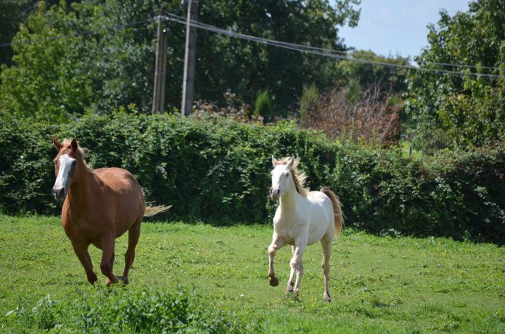 | Dire merci | Après les superbes qualif loisirs j'ai pris le temps de photographier mes perles sous la pluie un jour d'automne..... Tellement bien je serais capable de rester pendant des heures à les observer! Quelques photos de ces instants magiques!!! Entre mes 2 mecs : ![]() Tentative d'approche: ![]() ![]() Juste impressionnant lorsque l'on est à côté d'eux!!! Divino veut atteindre les étoiles! ![]() Divino presque aussi grand que Beltis :uh: Divino 1M48 et Beltis 1m50 ![]() ![]() Beltis fait le beau pendant que Divino joue au chat! ![]() Hiha!!!!!! ![]() ![]() Entre eux, la danse de l'automne: on a vraiment l'impression qu'ils ne font qu'un! ![]() Et mon Divino toujours en train de faire le pitre! ![]() Quand je les vois comme ça ensemble, je n'ai vraiment pas envie de les séparer car pour l'instant ils jouent en se respectant chacun! Dans le jeu Divino domine mais pas contre au quotidien au pré Beltis domine Divino et peut parfois être vraiment agaçant avec lui! je pense que cet hiver je vais quand même les séparer car j'ai peur qu'il empêche Divino de jouer son rôle d'étalon! Et maintenant Divino qui devient de plus en beau!!! (oui je sais je ne suis pas très objective!! :lol: :lol: ) Sous la pluie: ![]() ![]() ![]() ![]() ![]() ![]() Quand je dis que Divino ADORE sauter!!!! la PREUVE en images! ![]() ![]() |