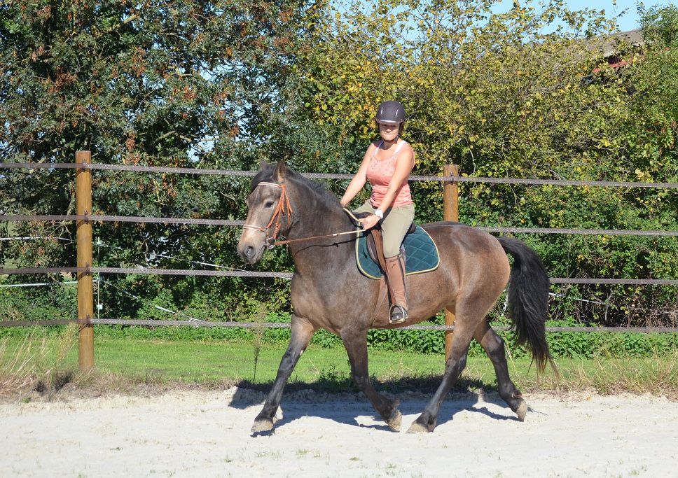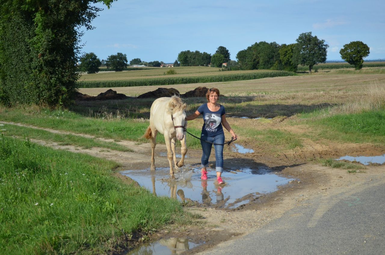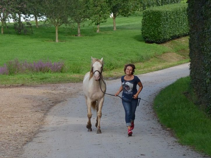 | Dire merci | Merci!!! oui Dandrane est juste impressionnante ! j'ai vraiment hête de voir les futurs bébés avec Divino !!! patience patience!!! Des photos de mon débourrage avec Beltis En 4 séances voilà où l'on en est: marche, trotte, galope sous la pression des jambes associées à la voix, s'arrête, prend des diagonales, des voltes, et part au galop sur le bon pieds! Des petites allures bien confortables (un peu poney) ....Tout cela sans un coup de cul ou autre vice! le contraire m'aurait étonné il est tellement manipulé ! ![]() ![]() ![]() Plus de photos la prochaine fois!! |
