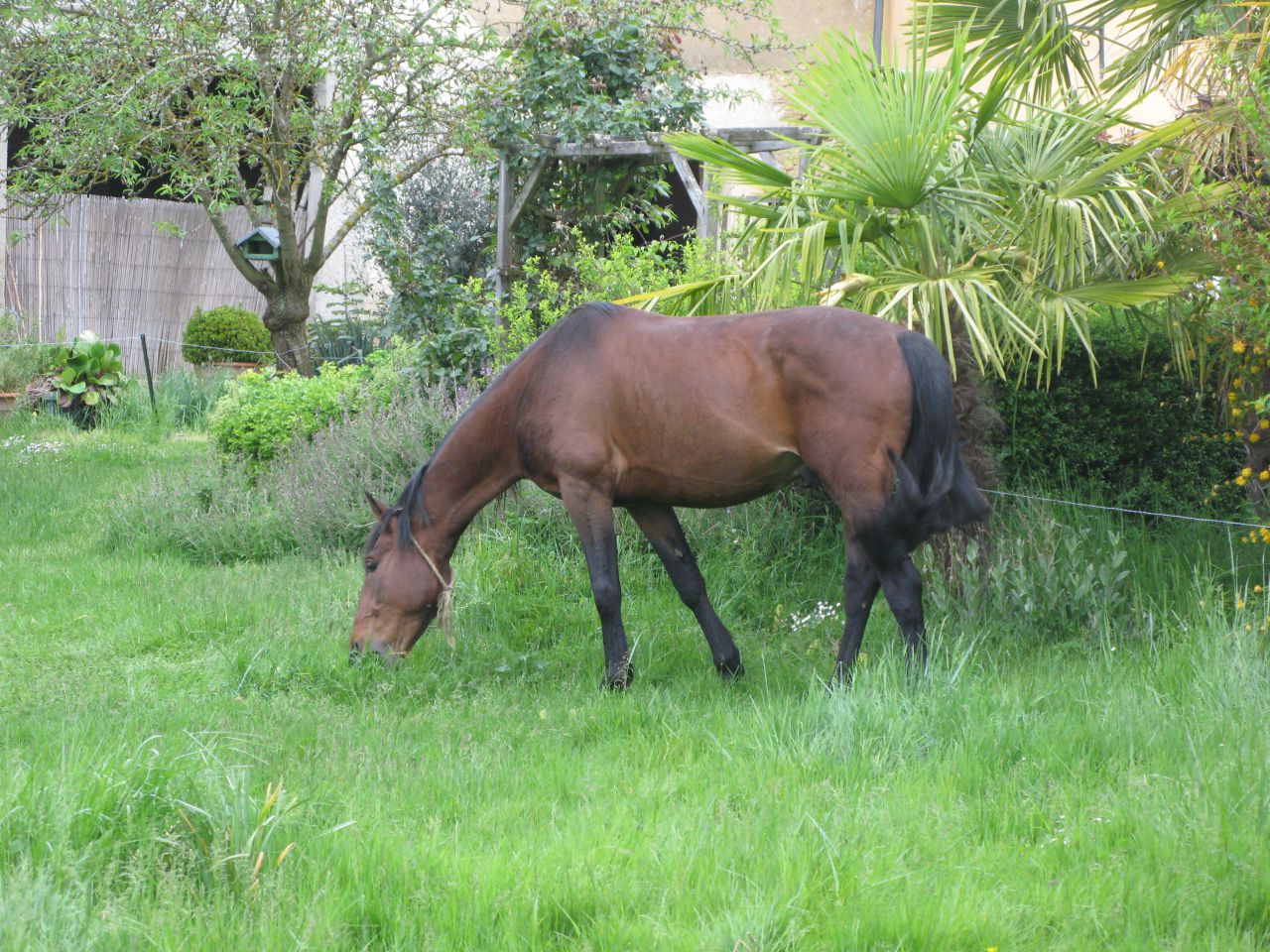 puis après je lui ai coupé cite fait la queue mal fait mais on a pas pris de risque ce cheval n'étant manipulé que depuis 24h ^^ donc au moins il marchera pas sur sa queue . Puis je suis partie.Et constance m'a raconté que cette aprem elle lui a mit dans l'eau des huiles essentielles pour déstresser et aussi fait un massage a la tete avec un truc antistress et une mini sortie de 25 min ... J'y retourne demain toute la journée à suivre ... et il risque de se faire castré jeudi ou vendredi !