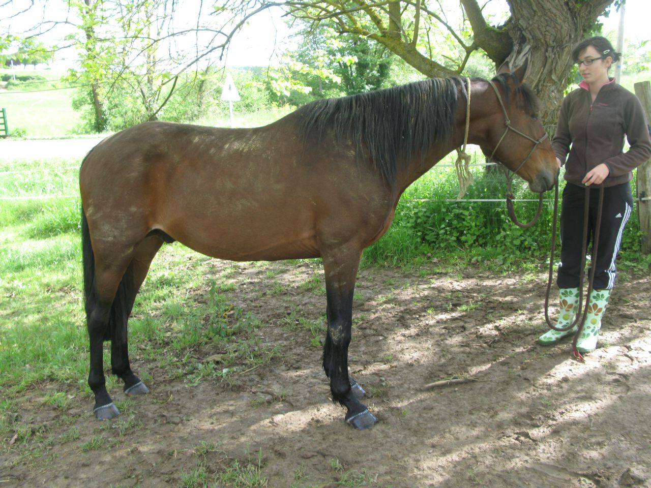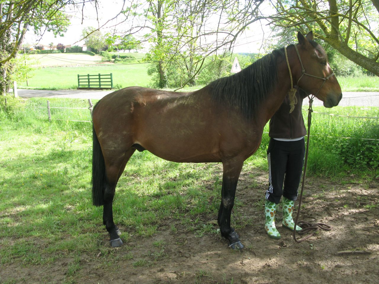 | Dire merci | Depuis quelques je recherchais un cheval depuis que mes parents m'en ont promis un mais mes recherches menaient souvent à rien car j'avais comme budget maxi 1000€ et je cherchais un cheval sympa pour du loisir et pas trop vieux donc généralement au dessus de mes moyens ..Puis un jour je tombe sur l'annonce d'une jeune jument super pour du loisir ect ..Tout me plaisait chez elle mais il n'y avait pas LE truc , alors je continues mes recherches ... Puis un jour je tombe sur une annonce d'un cheval de 10 ans à 300e il me fait pitié sur les photos il a une corde au tour du cou et à ce prix là j'avais peur du pire ...Alors vendredi soir (26/04) j'envoie l'annonce à une amie en lui disant que ce cheval me fait vraiment trop pitié mais le problème je ne me sentais pas capable d'avoir le niveau et l'expérience de le débourrer alors elle me propose d'aller le voir avec moi et s'il me plait de le mettre en pension chez elle le temps du débourrage et que je fasse les clôtures chez moi.Ceci étant dit je montre l'annonce à mes parents ils sont ok pour aller le voir donc j'appelle le mec et on ce fixe dimanche après-midi comme rdv .Et mon tonton nous a prêté pour l'occasion son 4x4 pour atteler le van de constance ceci étant fait on est partit et on arrive. Là il y a pas le proprio je l'appelle il me dit qu'il est sortit qu'il arrive dans 10min en attendant avec mon père mon frère et constance on s'approche du prés et là on découvre un cheval avec des draids queue qui touche par terre sabot longs je me dis que c'est qu'un détail le proprio arrive on rentre dans le prés le cheval ne se laisse pas trop approcher on arrive quand même à lui toucher le bout du nez. Pendant ce temps le proprio discute avec mon père et lui dit qu'il est né chez un marchand qu'ils l'ont eu à ces 3 ans que son père est trotteur ( sa mère espagnole à mon avis) il l'ont jamais débourré juste mis la selle une fois par manque de temps.Ensuite je demande au proprio si je peux lui mettre un licol et là il me dit qu'il connait pas..Je vais chercher le licol et je lui mets pendant que le proprio le tient à la corde il a pas bronché puis on dit au proprio s'il monte dans le van on le prend alors le proprio ni croit pas trop ... Je le sors du prés et il me suit à mi chemin constance le prend pour le faire monter dans le van et là il y va il s'arrete devant pour renifler mais n'a fais aucun pas en arrière à aucun moment ! Puis au bout de 15 min il finit par monter (je n'y croyait pas c'est un cheval super franc !). Donc pour pas l’impatienter on part direct une fois le van fermer! En arrivant chez constance on le fait descendre il avait bcp transpirer et il était stressé elle le fait un peu marcher puis on le met au box ce qu'il ne connaissait pas .Au bout d'un moment il se calme un peu . puis le soir elle décide d'aller le voir et le toucher un peu partout il a trop rien dis enfin il la regardait un peu inquiet mais comme sa il a eu toute la nuit pour y réfléchir ... Message édité le 29/04/13 à 20:03 |