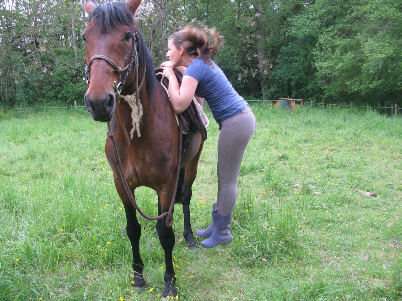 | Dire merci | hier séance où on revoit les bases à pied et en longe avec selle sur le dos et etriers descendus, cheval tout bien meme si un peu deconcentré par moment !! puis je met le pied à l'etrier et monte en sac à papate où je lui demande flexions, je touche les fesses, les épaules le ventre ect cheval ne bouge pas ! ce matin, meme chose, au debut en longe cheval pas dutout concentré, je suis obligé de le sonner sur le licol plusieurs fois, puis il devient bien ♥♥ on refait le sac à patate cheval super ! tiph32 le fait à son tour pendant que je demande au cheval qq exos (bouger hanches, épaules, reculer, flexions, marche, baisse la tete) cheval fait tout nickel |