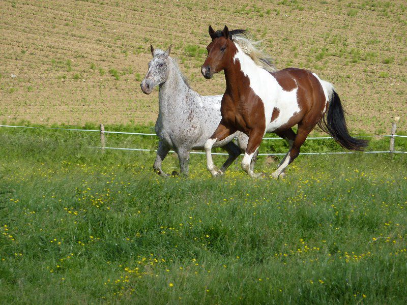 | Dire merci | Coucou ze_kita Merci de faire remonter mon topic du fin fond du fofo Alors la miss était partie à la saillie elle est resté 4 mois avec l'étalon h24 au pré avec lui et elle n'a pas pris je comprends pas pourquoi pourtant on me disais en saillie naturelle ça marche toujours.... Bref le printemps prochain on retente et je vais faire des piqûres pour déclencher l'ovulation.... Du coup fin août je suis allé la récupérer et je les ai tout les 2 à ma maison, ils se connaissaient pas ça roule Impec en fait! Je peux la bosser dans mon pré sur le plat ça fait plaisir ! Et j'ai fait ma 1 ère balade monté vendredi (elle ne connaissais pas du tout le coin) et ça été même si beaucoup de choses mangeait les chevaux Ah et j'ai coupé sa crinière ça ne plaît pas à certains mais à un moment donné fallait bien raccourcir même en faisant rien sans bouger dans l'abri elle transpire en dessous... Donc bon couik et puis ça repoussera! |