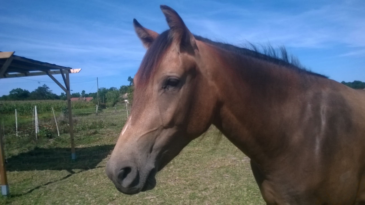 | Dire merci | Sacré troupeau effectivement (bon, quand il y avait San-Nom, c'était un peu plus impressionnant, mais les deux hongres ne pouvaient pas se voir, maintenant Bounty est le seul gars, il se régale )Lones, mon ancien portable laissait un voile blanc sur les photos, celui-là fait de belles photos, c'est clair ! ttropchoutoi, merci pour ma Dunette, elle est harmonieuse et pousse vraiment bien. |