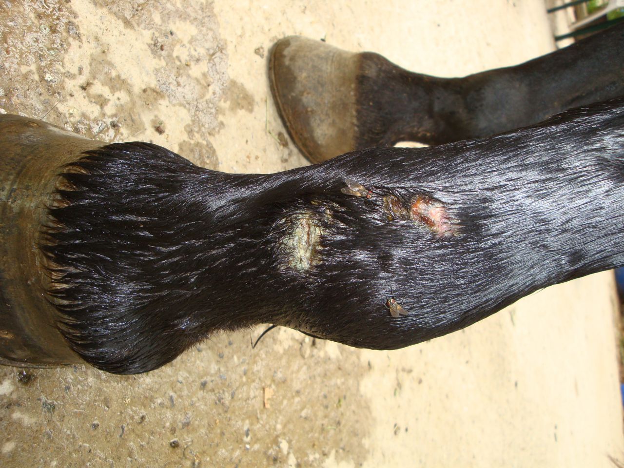 | Dire merci | Elle a de la chance ma grosse débile que je l'aime beaucoup parce que parfois mon dieu j'en ferais bien du saucisson! Donc elle est en pature depuis lundi vu que moi j'ai pris quelques jours de repos, j'arrive ce matin pour aller faire un tour, je vais chercher le monstre, je me dis zut! elle m'aime déjà plus elle vient pas au petit trot! Mais si, en fait quand elle est arrivée près de moi elle a l'antérieur gauche tout arrangé! ![]() ![]() Donc devant c'est quand elle tape dans la porte de son box, on voit en-dessous c'est la semaine passé j'avais mis de l'argile dessus au-dessus c'est sans-doute quand elle est rentrée pour manger, derrière c'est hier apparement, elle aurait arraché les clotures donc prise dans le fils ruban, je vois pas d'autre possibilité parce que bon, pour une fois qu'il fait sec en belgique, elle peut pas me faire une crevasse comme-ça en deux jours! |
