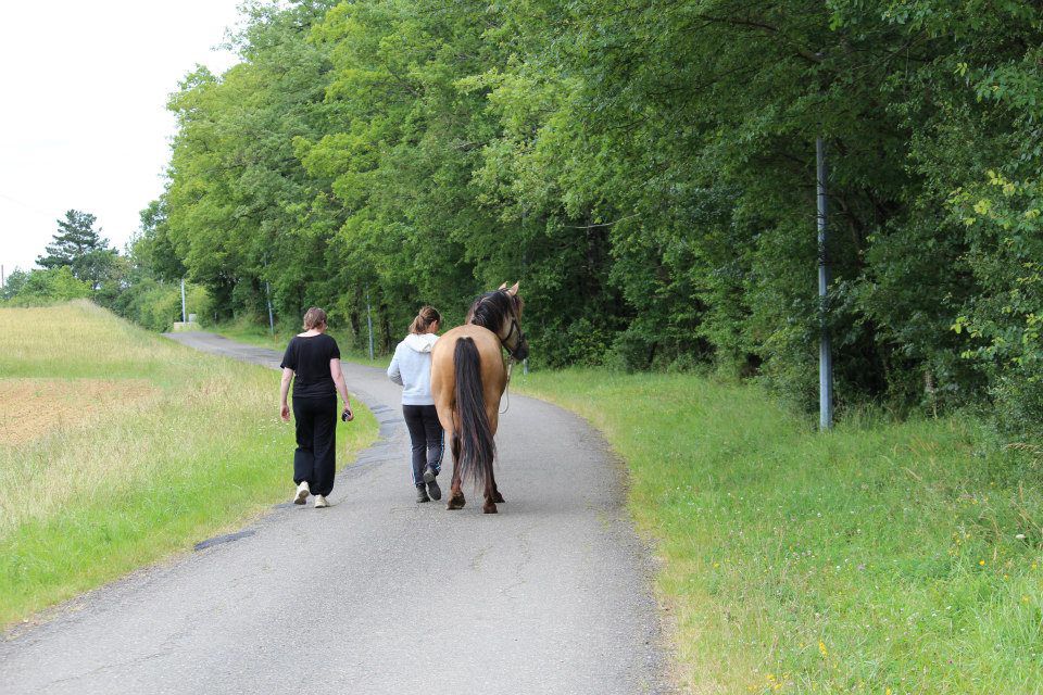 | Dire merci | donc les conclusion de la sortie c'est que y a encore du boulot parce que pour l'instant c'est plutôt dangereux de le sortir donc pas prête de monter dessus il a d'abord besoin d'apprendre les bonnes manières et de comprendre que NON quoi qu'il arrive il n'a pas le droit de marcher sur le cavalier j'ai aussi remarqué qu'il avait un instinct de fuite assez fort, que sa réaction à toutes ses peurs est la fuite donc bosser sur ça aussi car ça met en danger le bipède et le cheval lui même ..donc on va continuer ça, faire de la mania, continuer les jeux de parellis, lui montrer un max de truc qu'il apprenne à céder, à se "soumettre" mais aussi à faire confiance et à refouler son instinct de fuite vraiment qu'il apprenne à se gerer .. et après ça on commencera à envisager le boulot monté dans le calme et en sécurité |