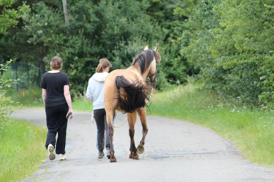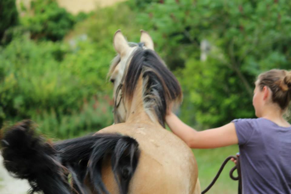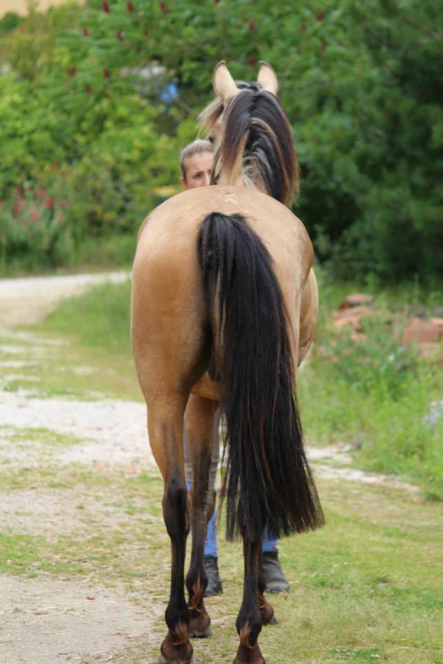 | Dire merci | Un pti post pour mon ado boutonneux qui est parti au travail pour quelques moi chez JivagoetDjerba. Suerte, c'est le fils de ma jument, Géérie : ![]() Et de l'étalon Lusitanien de mes amis, Custer : ![]() A la naissance, ça donne cette petite chose toute ratatinée : ![]() Pour donner 5 ans plus tard : ![]() 5 ans sans avoir fait grand chose de sa vie. Jusqu'à trois ans, manipulations de base : le licol, donner les pieds, marcher en main, tenir à l'attache, céder à la pression et se laisser toucher de partout. A 3 ans, débourrage. 3 mois de "travail". De l'extérieur essentiellement pour mettre en place les "boutons". Ensuite remis au pré. L'été de ses 4 ans, 1 mois de boulot où il a été mis un peu à l'obstacle et il est parti 2 jours en rando. Rien fait depuis, autant dire qu'il n'a pas été usé par le travail Je cherchais depuis une solution pour le mettre au boulot quelques mois. Et l'occasion s'est donc présentée en la personne de JivagoetDjerba. RDV a donc été pris le 30 juin pour que je lui amène mon grand dadet. |