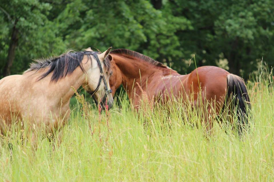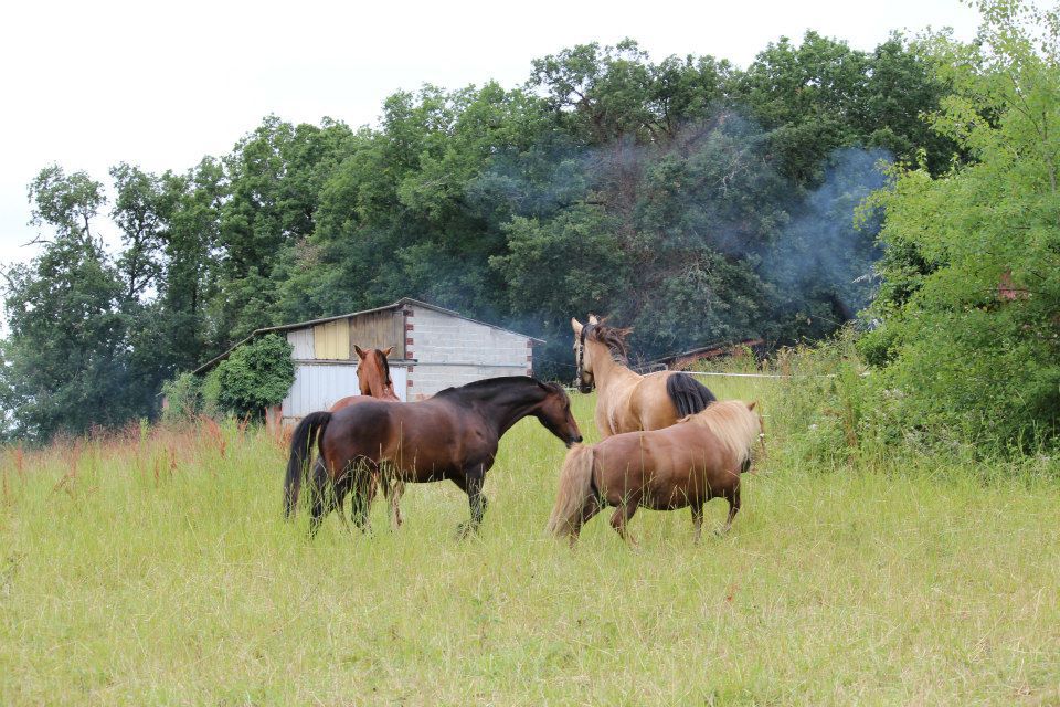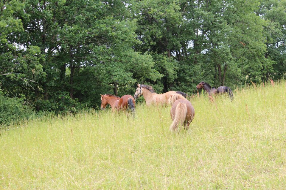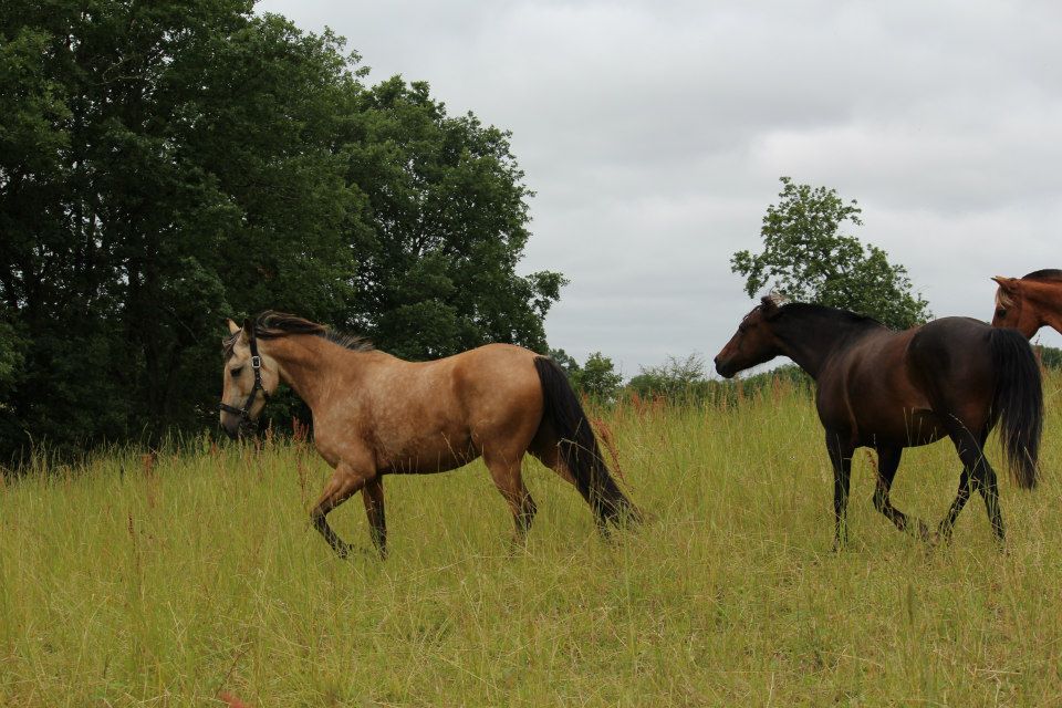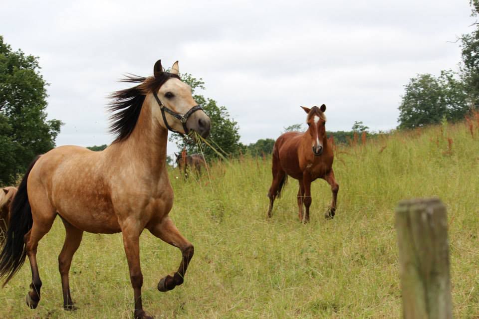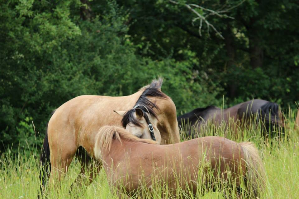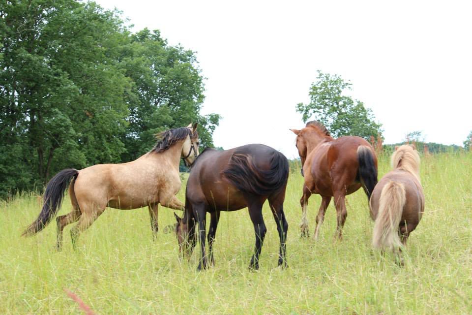| Dire merci | C'est vrai que en principe , on ne met pas un cheval directement dans un troupeau deja fait. Il vaut mieux pendant deux ou trois jours mettre le nouveau avec un seul du groupe afin qu'ils fassent connaissance. J'avais une jeune jument qui a été rejetée comme cela , et j'ai du demander qu'on la change de champ quand j'ai vu la grosse trace de morsure sur l'encolure....et je ne parle pas des coups de pied. |