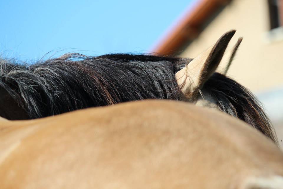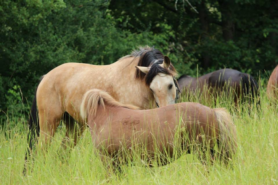 | Dire merci | et aujourd'hui, je ne l'ai pas bossé, juste gratouilles ce matin je l'ai mis au pré juste avec Jivago qu'il s'habitue à lui sans être obsédé par ses juments qu'il se sent obligé de protéger jalousement |