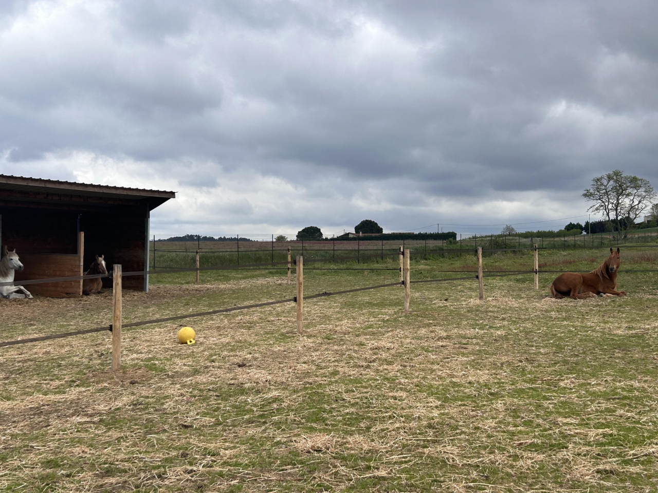 | Dire merci1 | Oui là le box fermé me servira de sellerie mais j'ai vais l'aménager de manière à pourvoir le vider pour enfermer un cheval si besoin. J'aime bien ce type d'abri où ils ont le choix de rester dedans ou de sortir. Le paddocks font 600 m² chacun et ils donnent chacun sur un pré de de 3000 m² et l'autre de 3500m². Donc c'est pas immense, m'ai en gérant bien à 3 c'est pas mal. Tout test plat, j'ai un terrain bien drainé, donc pas de boue. J'ai investi dans des clôtures de qualité. C'est un peu mon rêve qui se réalise. |