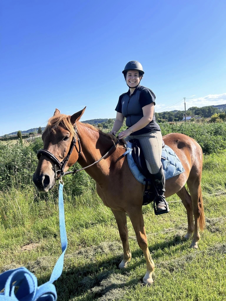 | Dire merci | Oui c'est sur elle a le sourire, après être remonté sur sa jument après plus d'un an, et ensuite un petit tour de Léo, elle a eu le sourire toute l'aprem. Léo est vraiment un amour de cheval qui comprend vite et est très appliqué. On a fait un tour en main et 2 tours lâchés au pas, avec des arrêts et des départs. On a laissé là dessus. |