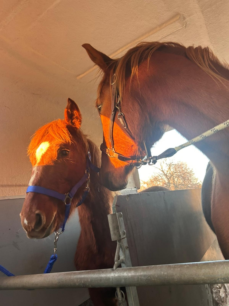 | Dire merci | Les poulains peuvent traverser les clôtures quand ils sont seuls dans un endroit qu'ils connaissent pas. Si Léo est gentil avec lui et qu'ils ont fait connaissance dans le van, c'est bien qu'ils restent ensemble ![]() |