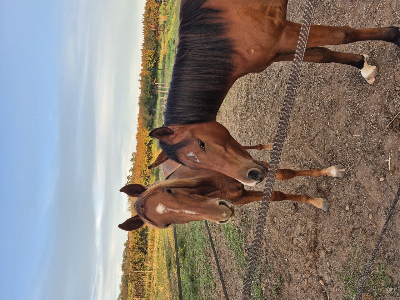 | Dire merci | En ce moment les changements de température min vieux corps a du mal, et j’ai une méga tendinite sur un poignet. Mais bon besoin de m’aérer donc avec ma fille et Vaïna et Ukaï une bonne heure de balade au pas, avec des chevaux super actifs. Vaïna aucun signe de boiterie, ça fait 3 mois poste entorse, alors on a dépassé le temps de marche, mais alors ça fait du bien. |