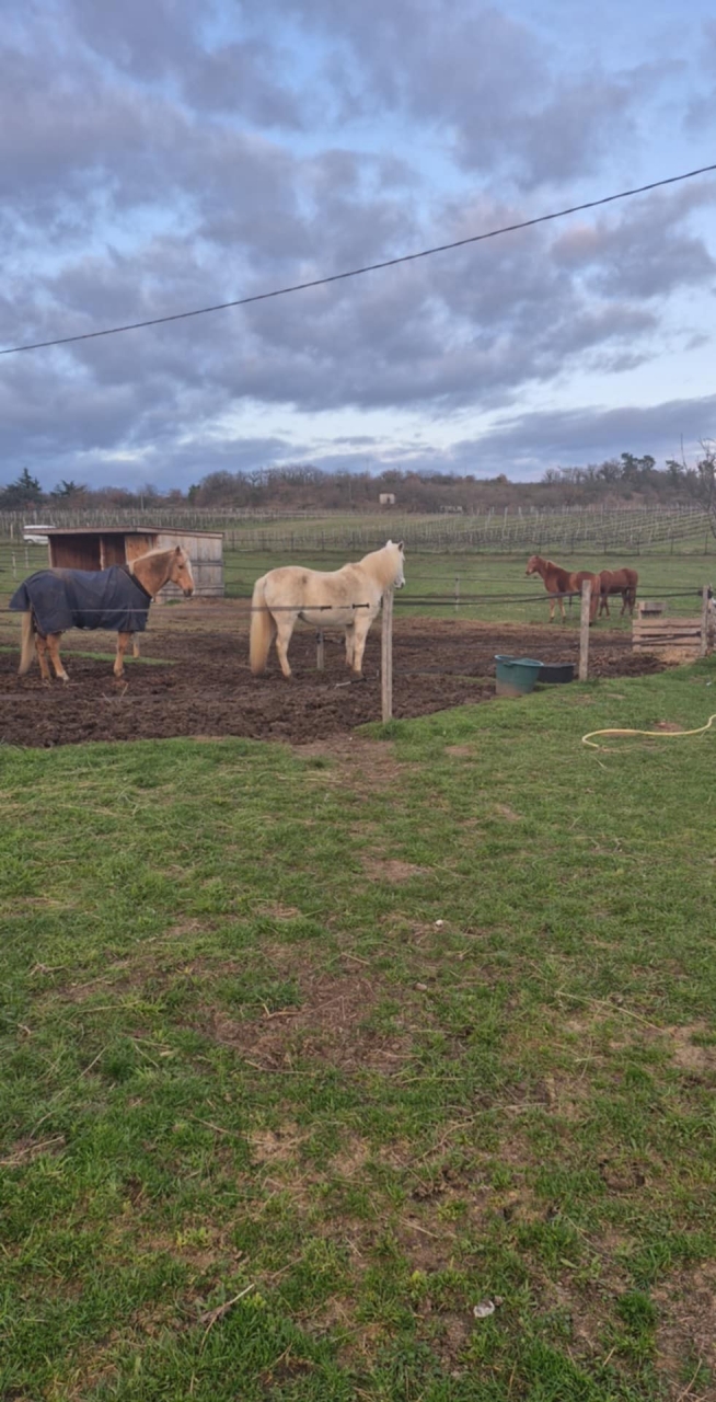 | Dire merci | Aujourd’hui coirs annulé carrière noyée ![]() Donc je vais utiliser mon petit manège, c’est moins sympa mais bon j’ai au moins ça. Et je vais remettre à l’attache Léo et Olistik pour qu’ils se rappellent l’un à l’autre. |