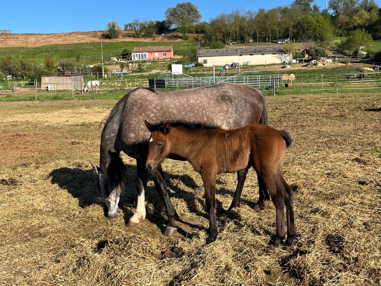 | Dire merci | Merci, j'avoue que moi aussi je le trouve vraiment joli et il promet d'être un joli cheval. On verra si il continu a pousser un peu, je ne me rend pas compte à partir de 2 ans ce qu'il peut encore prendre. Après je ne lui trouve pas beaucoup de défaut, il regroupe vraiment ce que j'aime chez un cheval. Et il promet une vrai polyvalence. |
