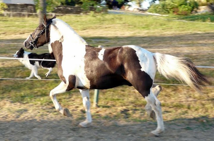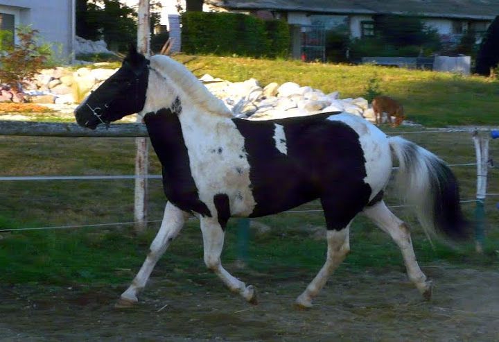 | Dire merci | début du boulot pour Amigo! Objectif débourrage à l'attelage. Je l'ai testé un peu en liberté : un trot puissant avec une bonne amplitude, des difficultés à prendre le galop, cette allure n'est pas son point fort, a voir ce que ça donne plus tard avec le boulot. Essai de sauts sur un mini obstacle, il est franc, ne se pose pas de questions mais il saute le minimum sans technique Donc a prioris l'attelage conviendra bien pour lui qui est posé, calme mais énergique au travail, mental froid et non émotif, gentil, physique puissant... |
