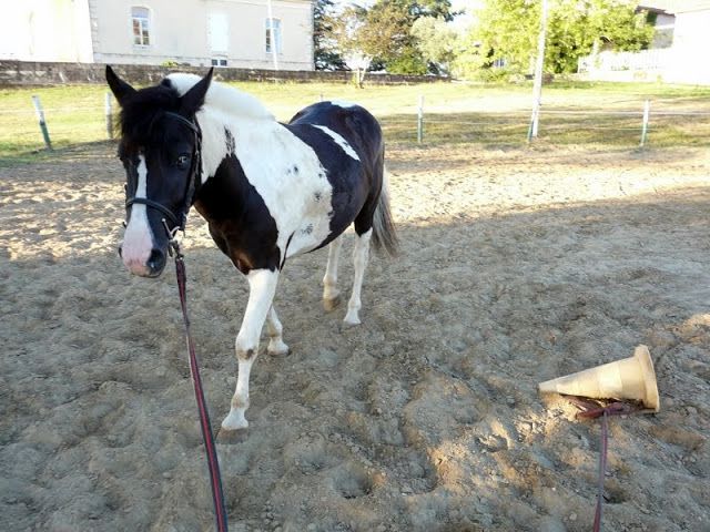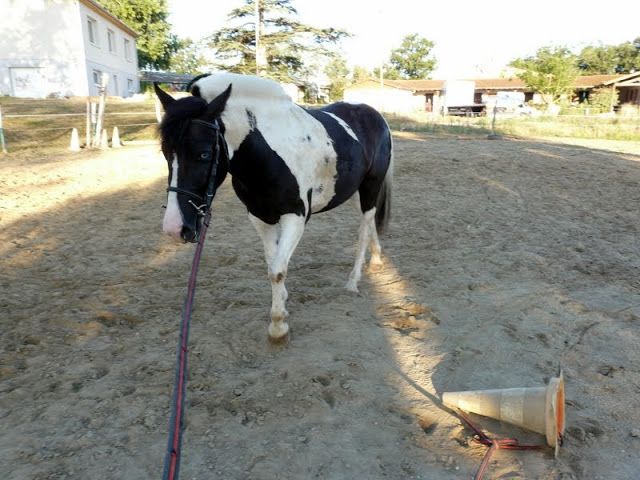| Dire merci | Ensuite boulot! on a donc bossé : - pas/trot/arret, transitions à la voix en longe - changer d'oeil, je ne vais pas expliquer, la vidéo est en dessous. Le but de l'exercie? Préparer les changements de direction aux longues rênes et habituer au contact sur les flancs et les jarrets pour les longues rênes et plus tard les traits - marcher en longe devant sont meneur, préliminaire aux longues rênes : ![]() d'un côté puis de l'autre... ![]() - désensibilisation à un objet qui traine au sol, en prévision de la traction du pneu, ici un plot : d'abord devant, puis à côté, ![]() ![]() ensuite derrière, puis petit a petit la longe vient au contact des flancs et des jarrets ![]() |