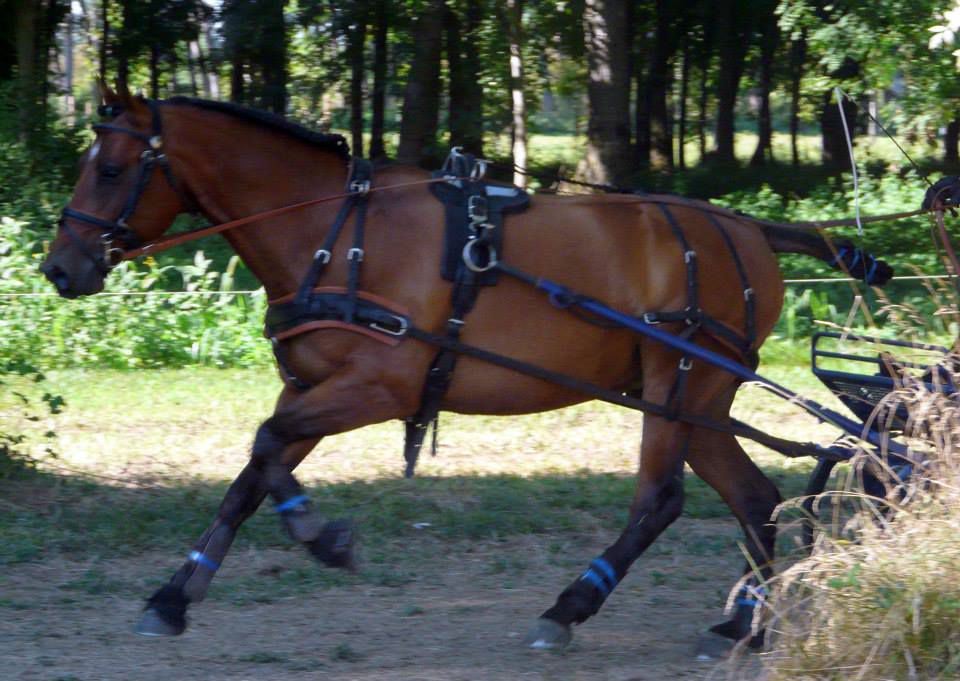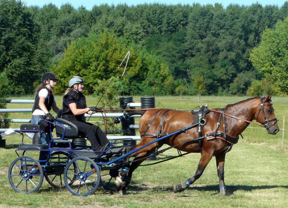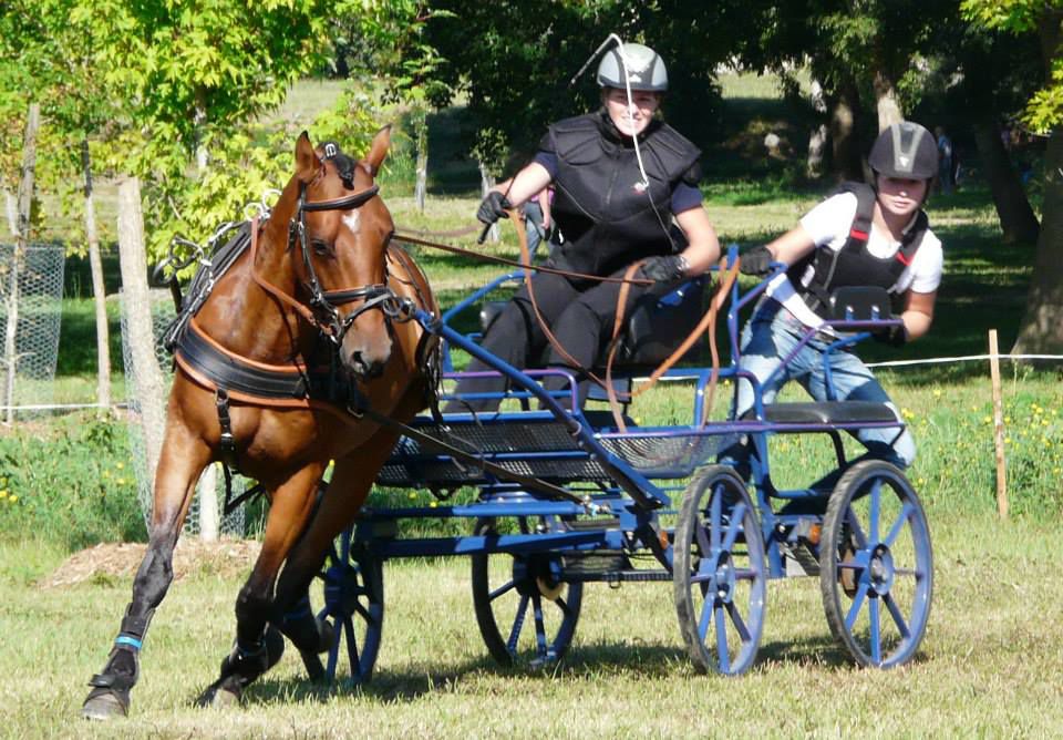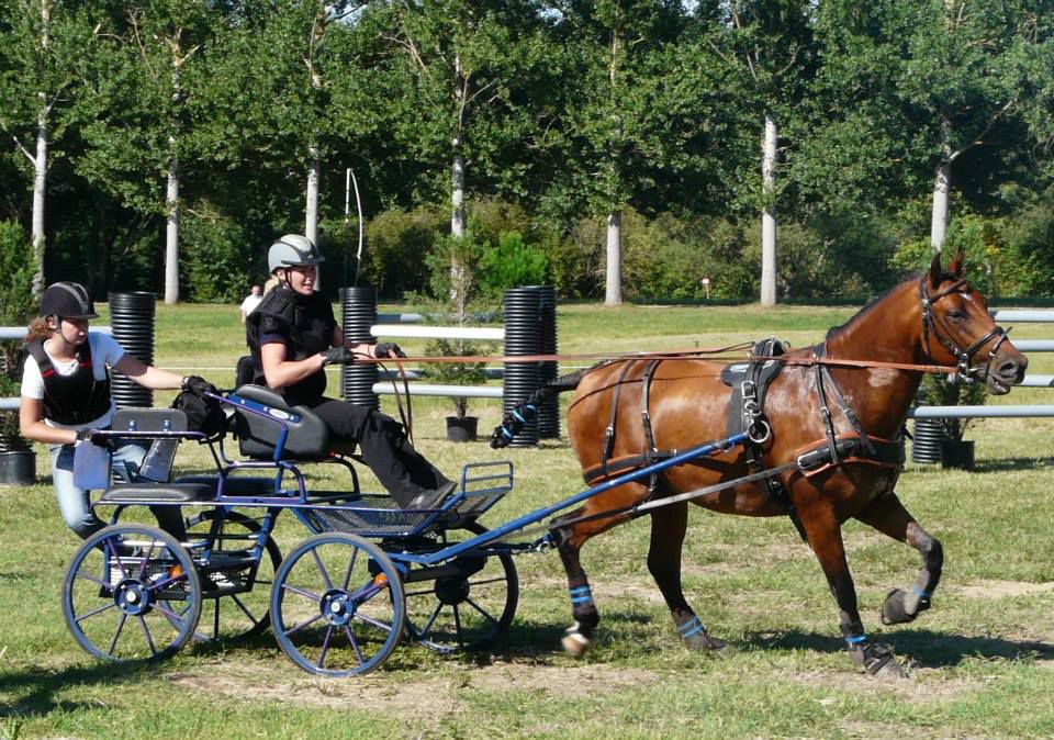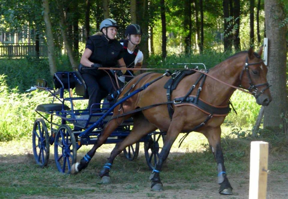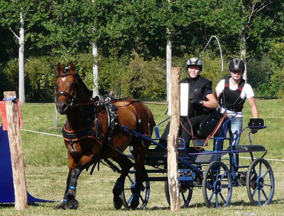 | Dire merci | aujourd'hui sortie attelage pour Antarès, nous sommes allés faire un rallye de 18km, essentiellement au pas car très dénivelé, pas mal de passages délicats, mais Antarès a été top, très courageux et pas un seul faux pas! l'après midi petite maniabilité dans une ambiance conviviale. un terrain pas très confortable, mais un tracé sympa pour travailler. très fière de mon petit cheval |