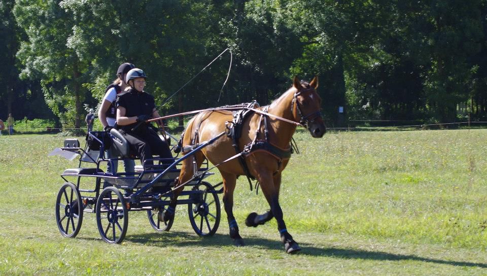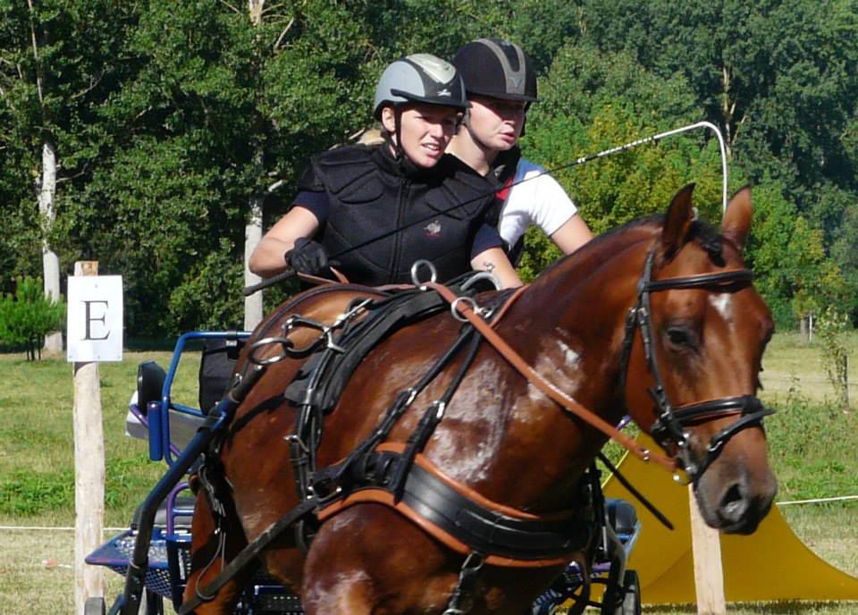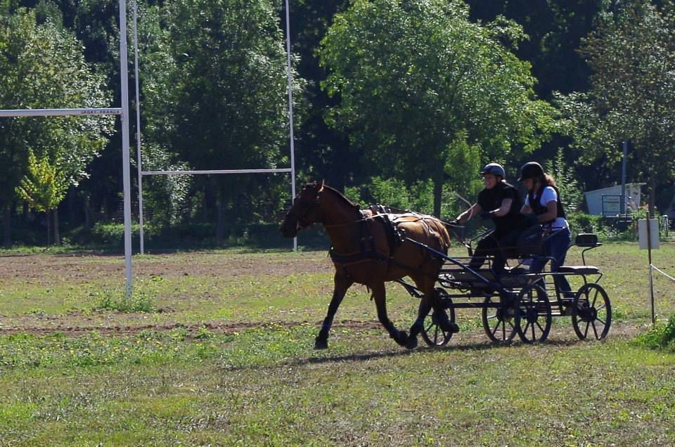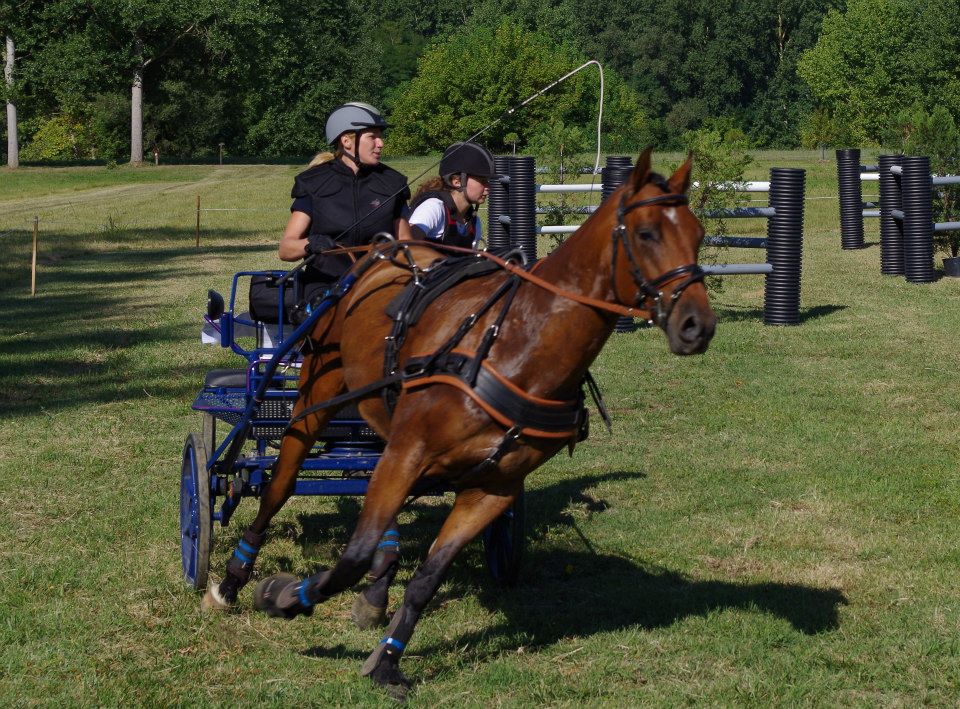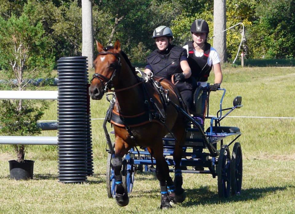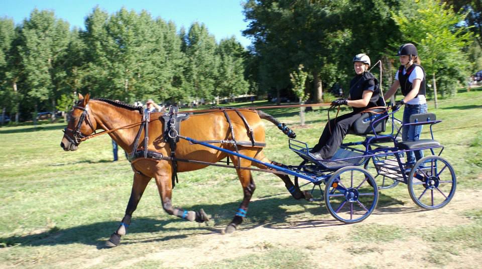 | Dire merci | aujourd'hui sortie attelage pour Antarès, nous sommes allés faire un rallye de 18km, essentiellement au pas car très dénivelé, pas mal de passages délicats, mais Antarès a été top, très courageux et pas un seul faux pas! l'après midi petite maniabilité dans une ambiance conviviale. un terrain pas très confortable, mais un tracé sympa pour travailler. très fière de mon petit cheval |